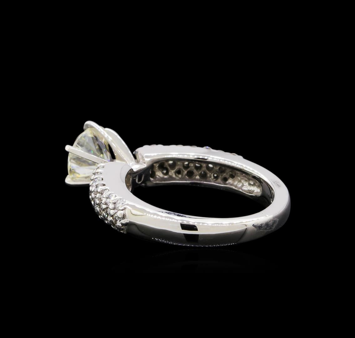 One 14KT white gold lady's engagement style ring weighing 5.55 grams containing one center diamond with SI clarity and H-I color weighing 1.20ct and adjacent diamonds with SI clarity and G-H color weighing 0.90ctw.