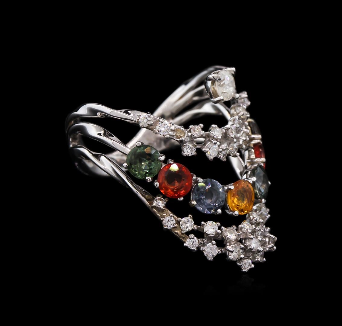 One ring featuring: 14KT white gold weighing 4.69 grams containing 7 multi color sapphires with a total weight of 2.10 ct and diamonds with a total weight of 0.66ct.