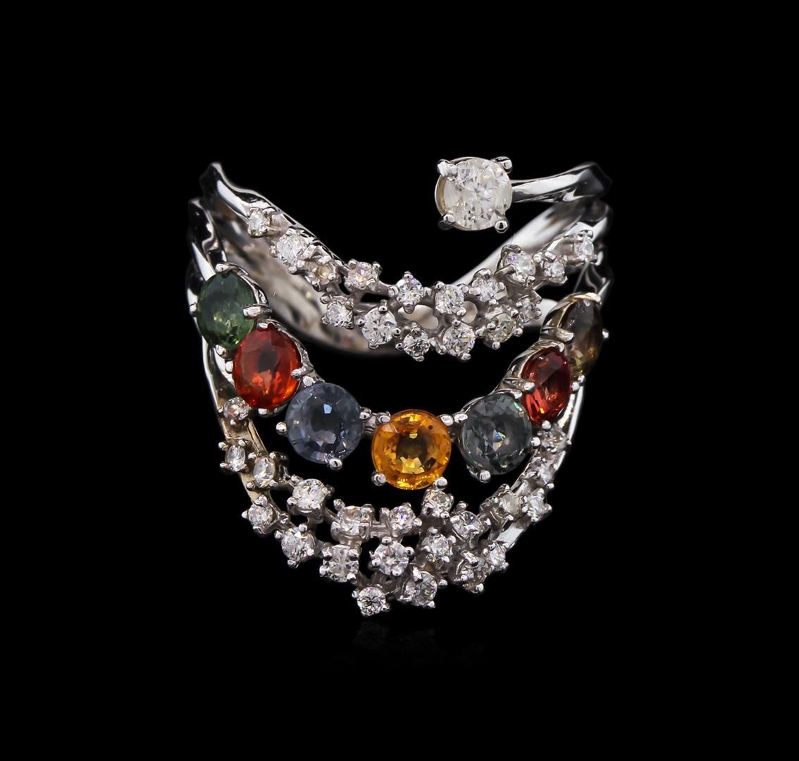 2.10 ctw Multi Color Sapphire and Diamond Ring - 14KT White Gold