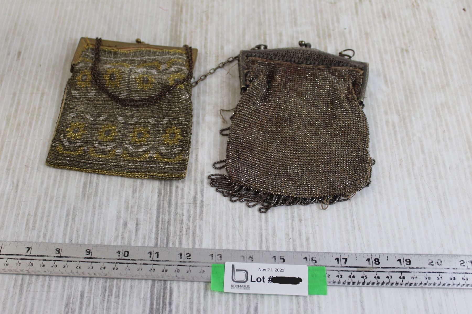 (2) 100-Year Old Beaded Evening Bags - Elaborate Metal Clasps, (1) Made in France