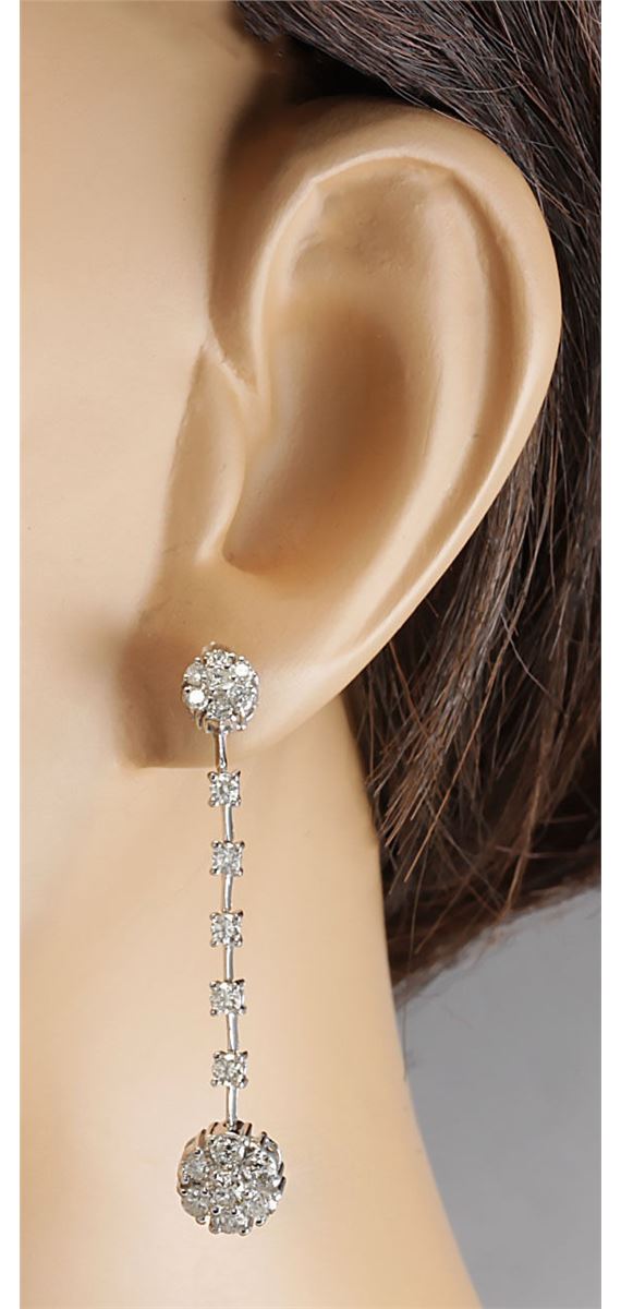 Stamped: 14K Total Earring Weight: 4.3Grams Diamond Weight: Total natural diamond weight is 2.10carat. SI1-SI2 clarity / G-H color Length: 1.77inch [SKU:702988]