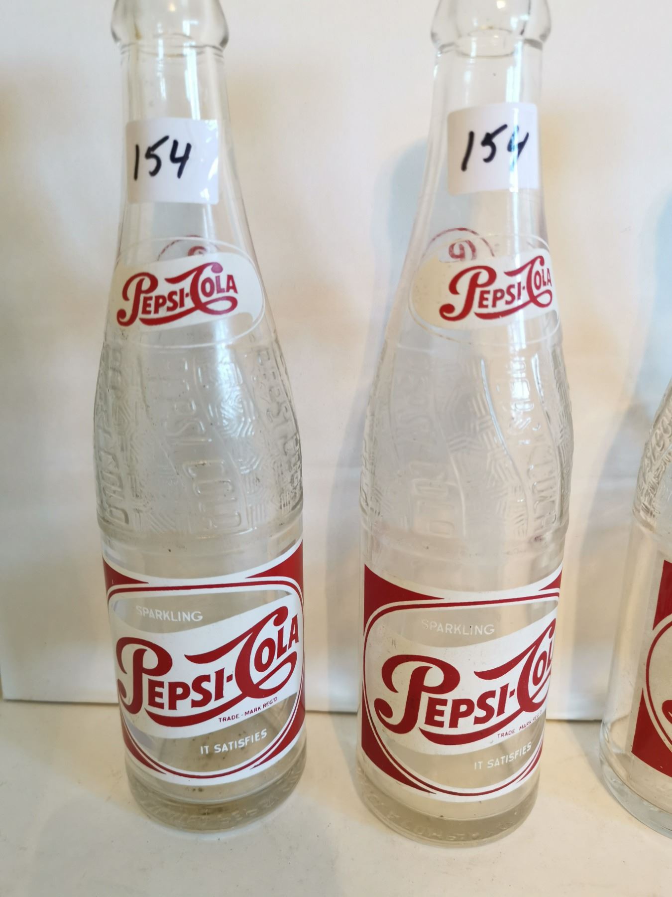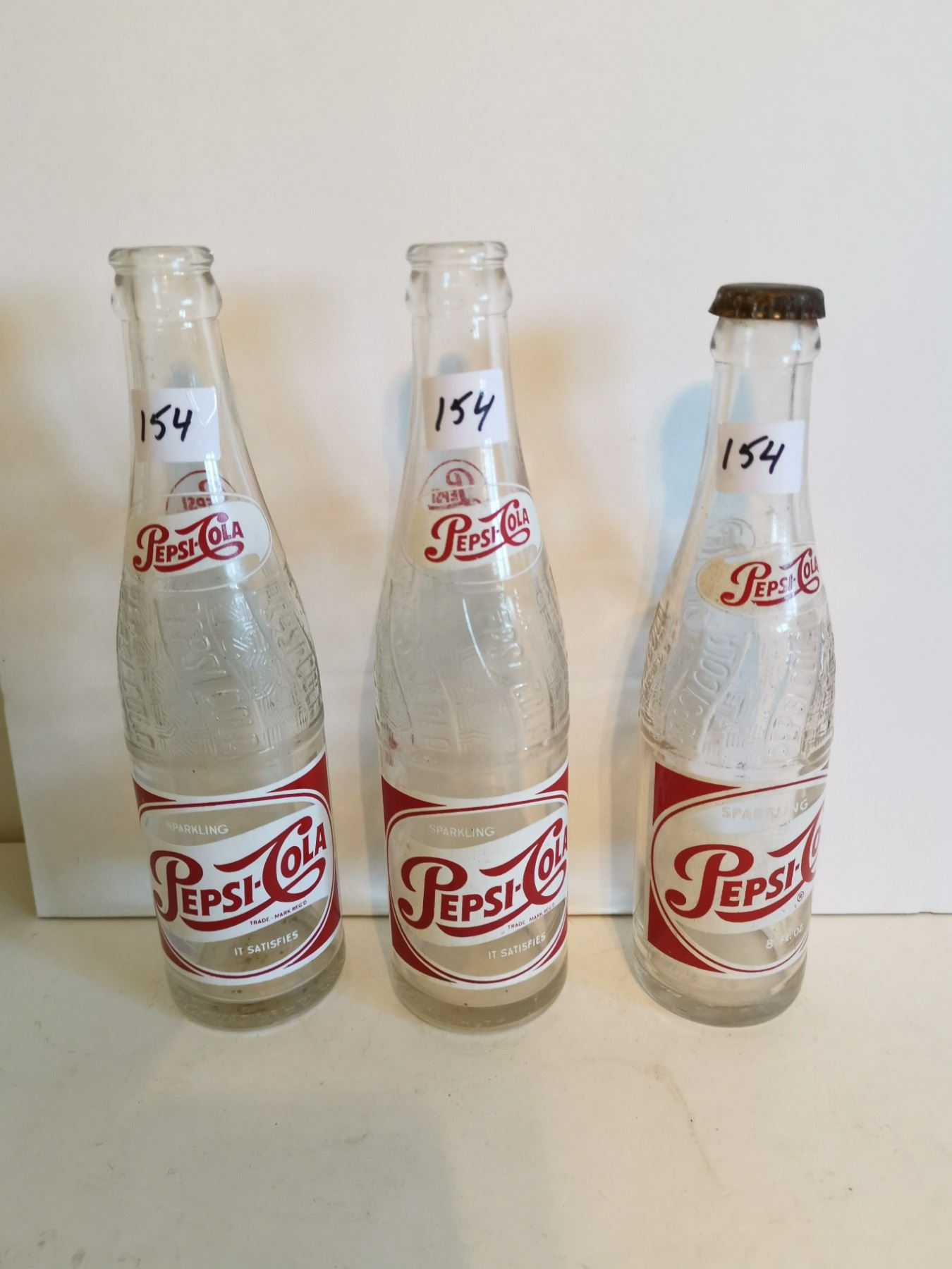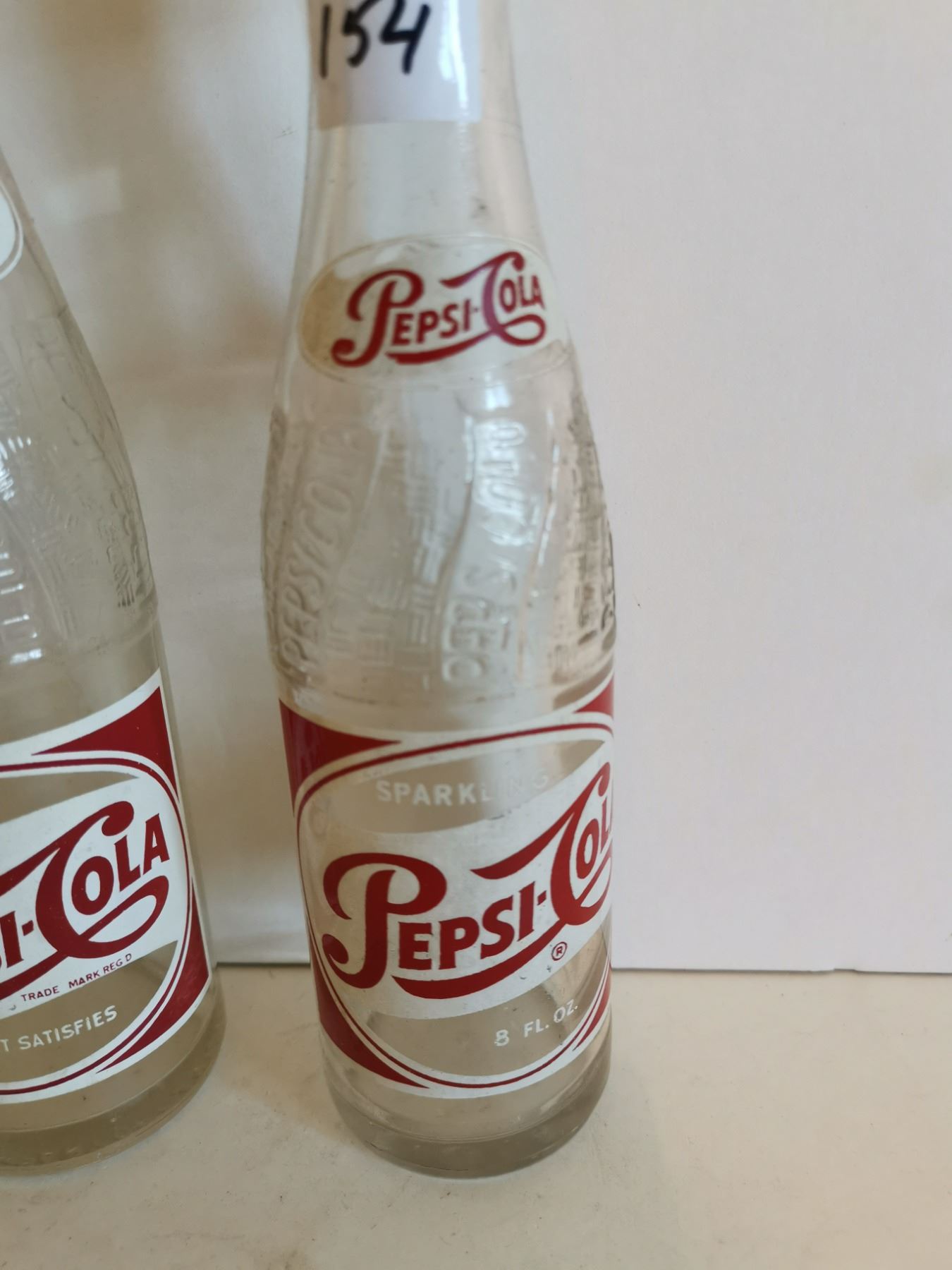 2 10oz 1 8oz Pepsi Cola bottles 1 with cap