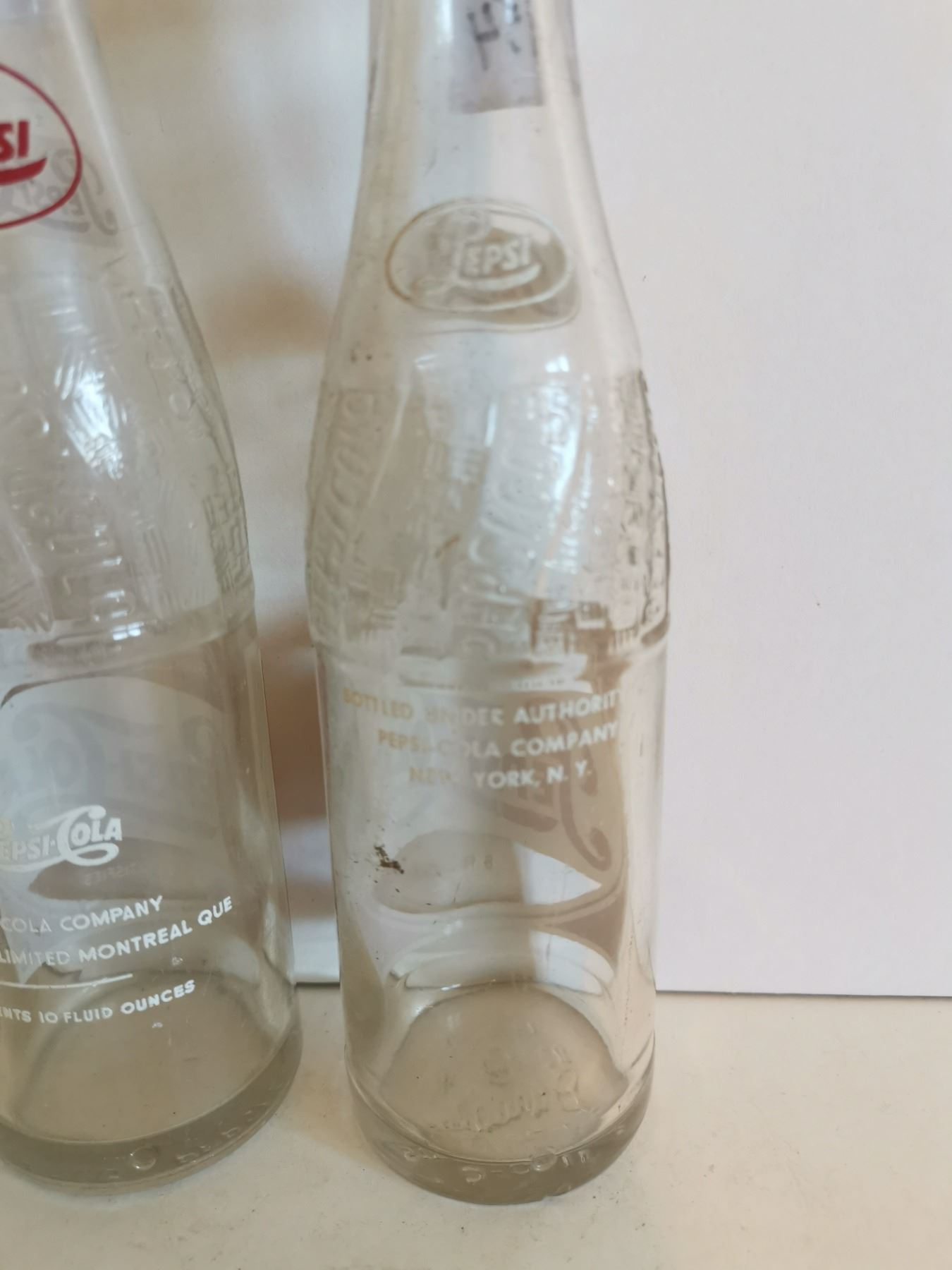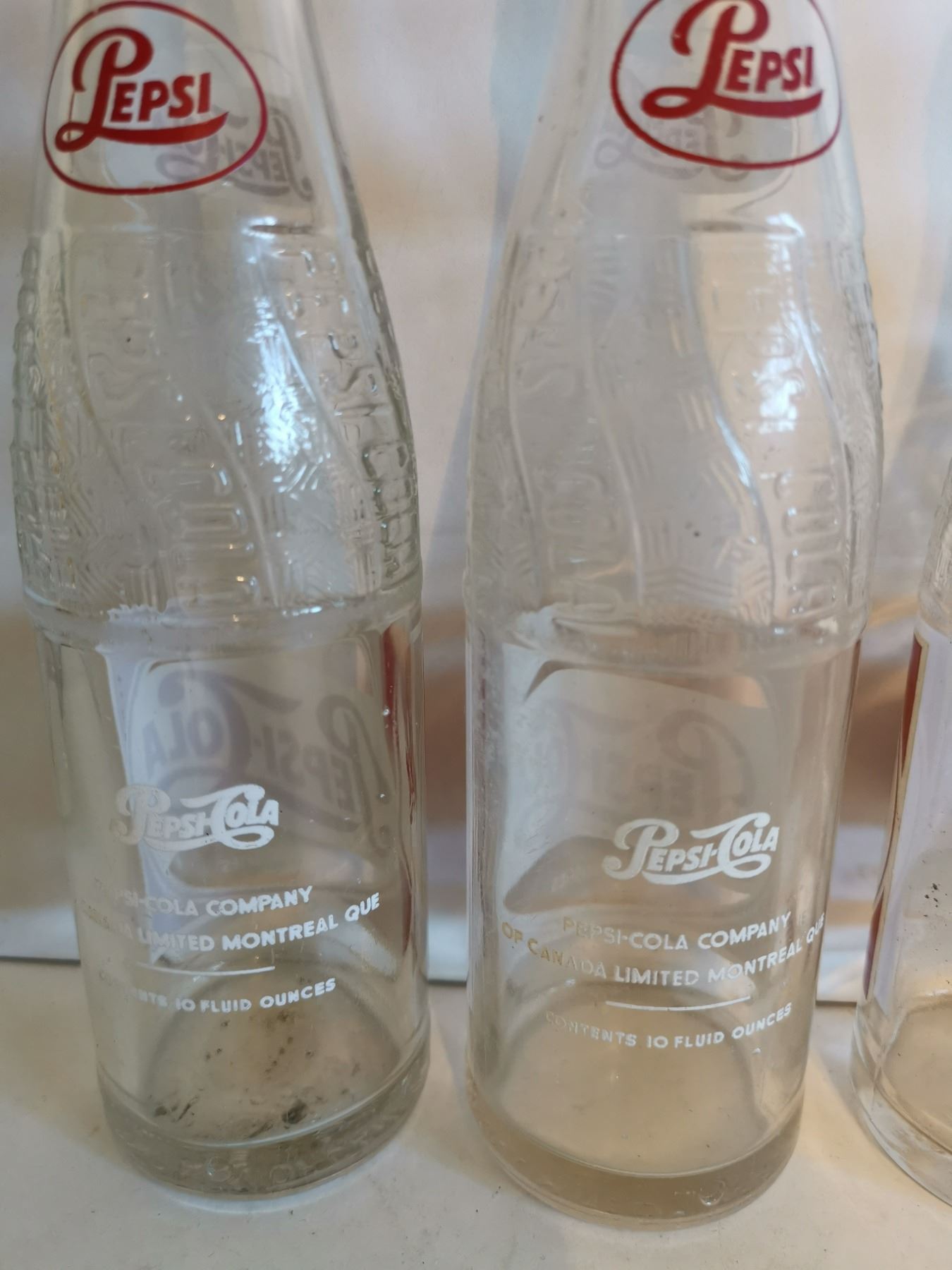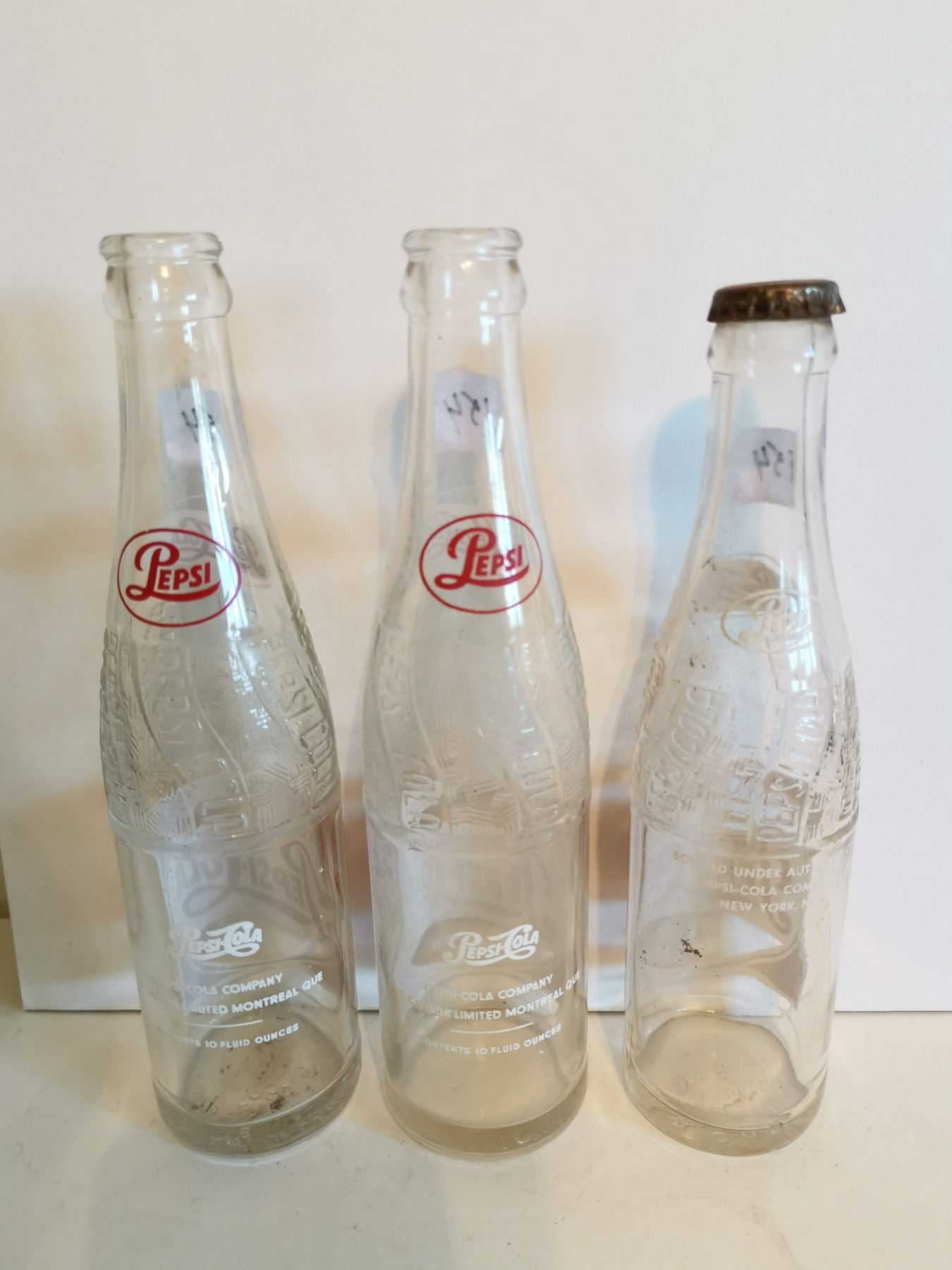2 10oz 1 8oz Pepsi Cola bottles 1 with cap