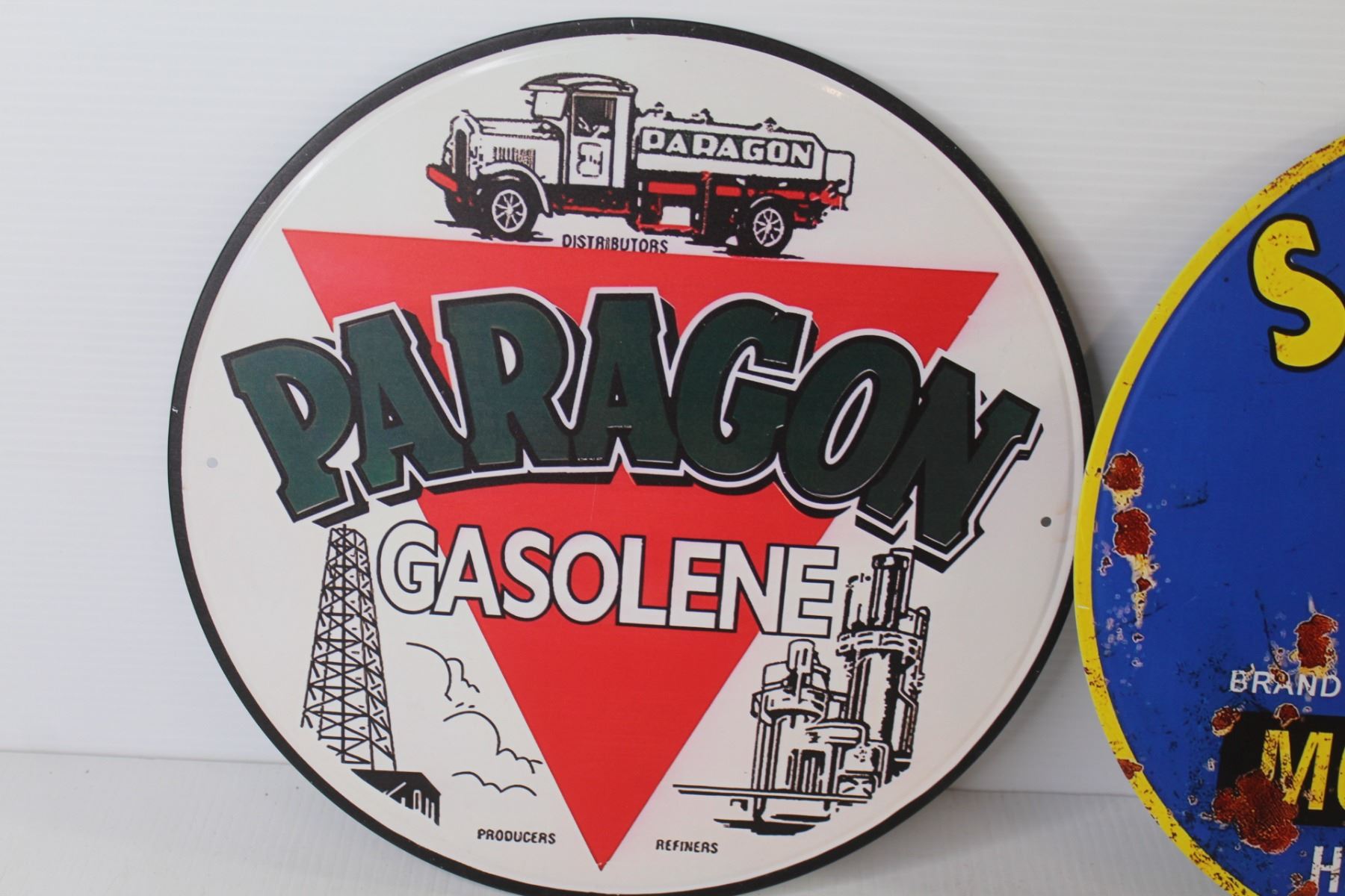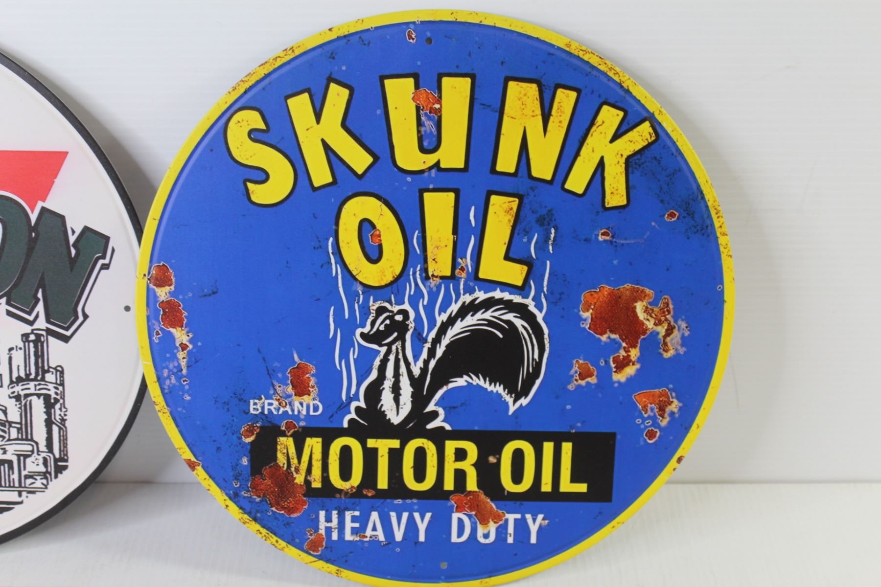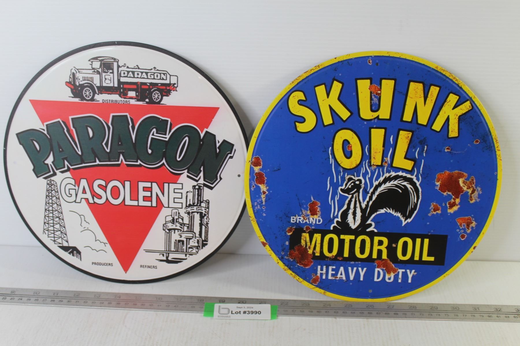 (2) 11 3/4" Round Tin Signs - Skunk Oil - Paragon