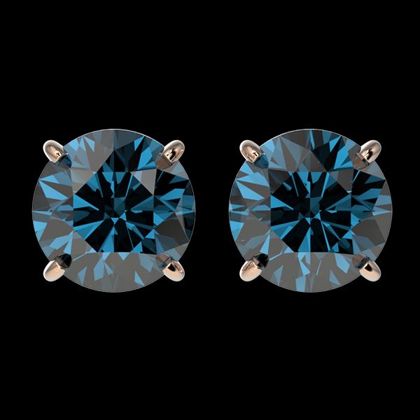 REF-217K5W -36659 ---- 2.11 CTW Certified Intense Blue SI Diamond Solitaire Stud Earrings 10K Rose Gold ---- Luxury Designer Brand Earring Appraised at $17,400 Certificate Number US36659 10k Rose gold, Earring Size is Larger, Earring measuring approx. Uniform, weighing in total approx. 2.2 grams. Made in the USA and is stamped 10k, Main stone 2.11 carat total weight containing 2 pieces of Intense Fancy Blue color with SI quality Round shape cut Diamond , Stone #2 carat total weight containing pieces of color with quality shape cut