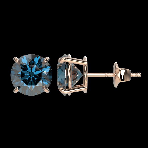 2.11 CTW Certified Intense Blue SI Diamond Solitaire Stud Earrings 10K Rose Gold ---- Luxury Designer Brand Earring Appraised Retail Price at $17,400 ---- SKU Number US36659 10k Rose gold Earring Size is Larger, Earring measuring approx. Uniform, weighing in total approx. 2.2 grams. Made in the USA and is stamped 10k, Main stone 2.11 carat total weight containing 2 pieces of Intense Fancy Blue color with SI quality Round shape cut Diamond , Stone #2 carat total weight containing pieces of color with quality shape cut