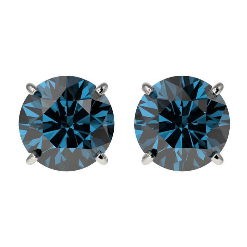 REF-217K5W -36658 ---- 2.11 CTW Certified Intense Blue SI Diamond Solitaire Stud Earrings 10K White Gold ---- Luxury Designer Brand Earring Appraised at $17,400 Certificate Number US36658 10k White gold, Earring Size is Larger, Earring measuring approx. Uniform, weighing in total approx. 2.2 grams. Made in the USA and is stamped 10k, Main stone 2.11 carat total weight containing 2 pieces of Intense Fancy Blue color with SI quality Round shape cut Diamond , Stone #2 carat total weight containing pieces of color with quality shape cut