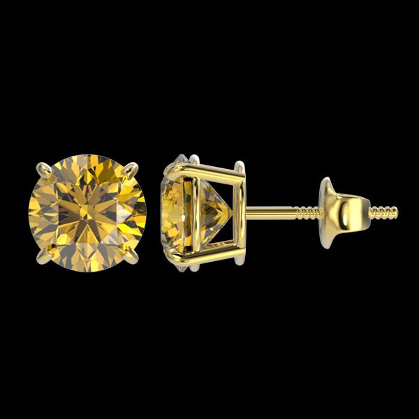 REF-297M2H -36673 ---- 2.11 CTW Certified Intense Yellow SI Diamond Solitaire Stud Earrings 10K Yellow Gold ---- Luxury Designer Brand Earring Appraised at $21,800 Certificate Number US36673 10k Yellow gold, Earring Size is Larger, Earring measuring approx. Uniform, weighing in total approx. 2.2 grams. Made in the USA and is stamped 10k, Main stone 2.11 carat total weight containing 2 pieces of Intense Fancy Yellow color with SI quality Round shape cut Diamond , Stone #2 carat total weight containing pieces of color with quality shape cut