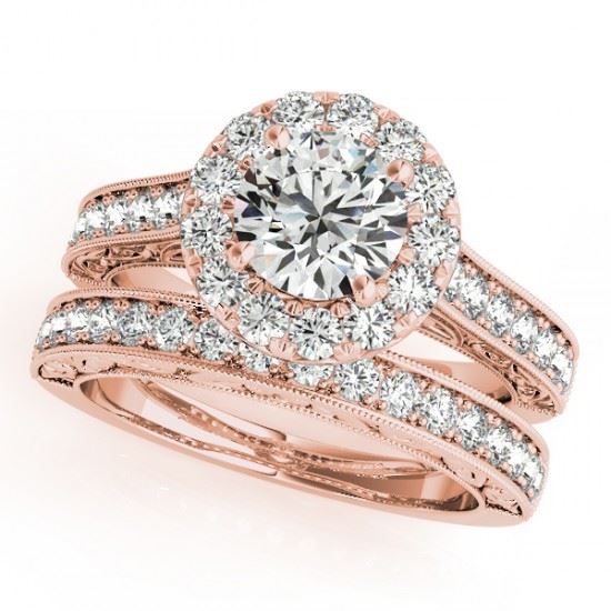 2.11 CTW Certified VS/SI Diamond 2Pc Wedding Set Solitaire Halo 14K Rose Gold ---- Luxury Designer Brand 2 Pc Set Appraised Retail Price at $21,400 ---- SKU Number US30952 14k Rose gold 2 Pc Set Size is 7, 2 Pc Set measuring approx. Uniform, weighing in total approx. 10.7 grams. Made in the USA and is stamped 14k, Main stone 1.00 carat total weight containing 1 pieces of H-J color with VS/SI quality Round shape cut Diamond , Stone #2 0.7 carat total weight containing 30 pieces of H-I color with VS/SI quality Round shape cut