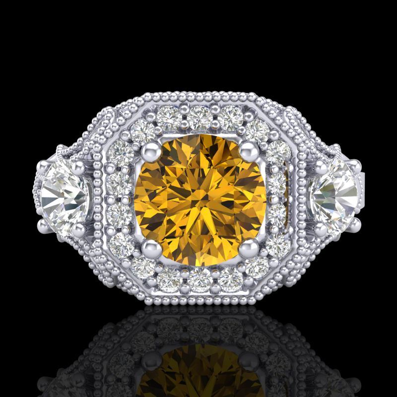 REF-283M6H -38302 ---- 2.11 CTW Intense Fancy Yellow Diamond Art Deco 3 Stone Ring 18K White Gold ---- Luxury Designer Brand 3 stone ring Appraised at $17,150 Certificate Number US38302 18k White gold, 3 stone ring Size is 7, 3 stone ring measuring approx. Uniform, weighing in total approx. 7.8 grams. Made in the USA and is stamped 18k, Main stone 1 carat total weight containing 1 pieces of Intense Fancy Yellow color with SI quality Round shape cut Diamond , Stone #2 0.5 carat total weight containing 2 pieces of H-I color with VS/SI quality Round shape cut Diamond , Stone #3 0.61 carat total weight containing 40 pieces of G-H color with VS/SI quality Round shape cut Diamond