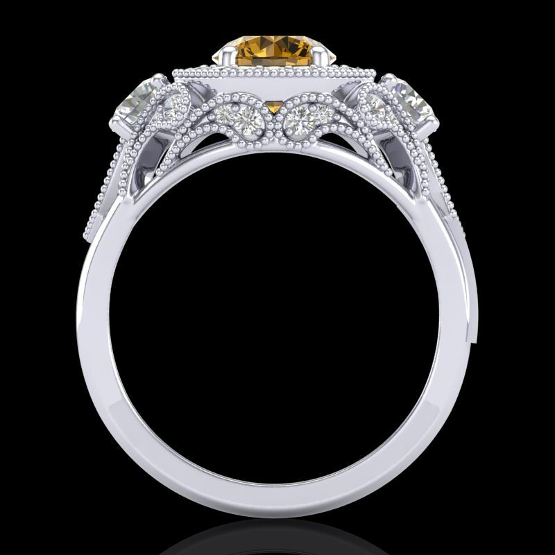 REF-283M6H -38302 ---- 2.11 CTW Intense Fancy Yellow Diamond Art Deco 3 Stone Ring 18K White Gold ---- Luxury Designer Brand 3 stone ring Appraised at $17,150 Certificate Number US38302 18k White gold, 3 stone ring Size is 7, 3 stone ring measuring approx. Uniform, weighing in total approx. 7.8 grams. Made in the USA and is stamped 18k, Main stone 1 carat total weight containing 1 pieces of Intense Fancy Yellow color with SI quality Round shape cut Diamond , Stone #2 0.5 carat total weight containing 2 pieces of H-I color with VS/SI quality Round shape cut Diamond , Stone #3 0.61 carat total weight containing 40 pieces of G-H color with VS/SI quality Round shape cut Diamond