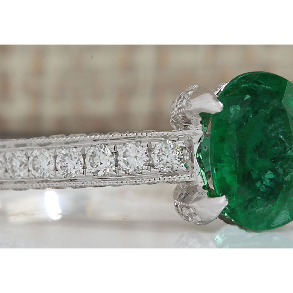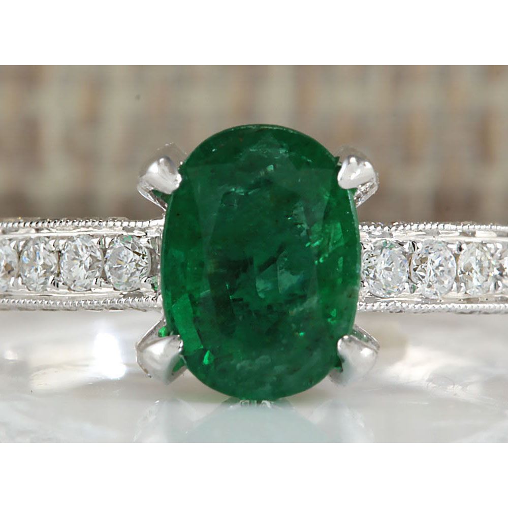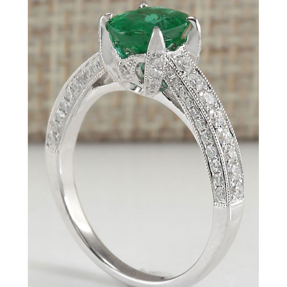 2.11 CTW Natural Emerald And Diamond Ring In 18K White Gold