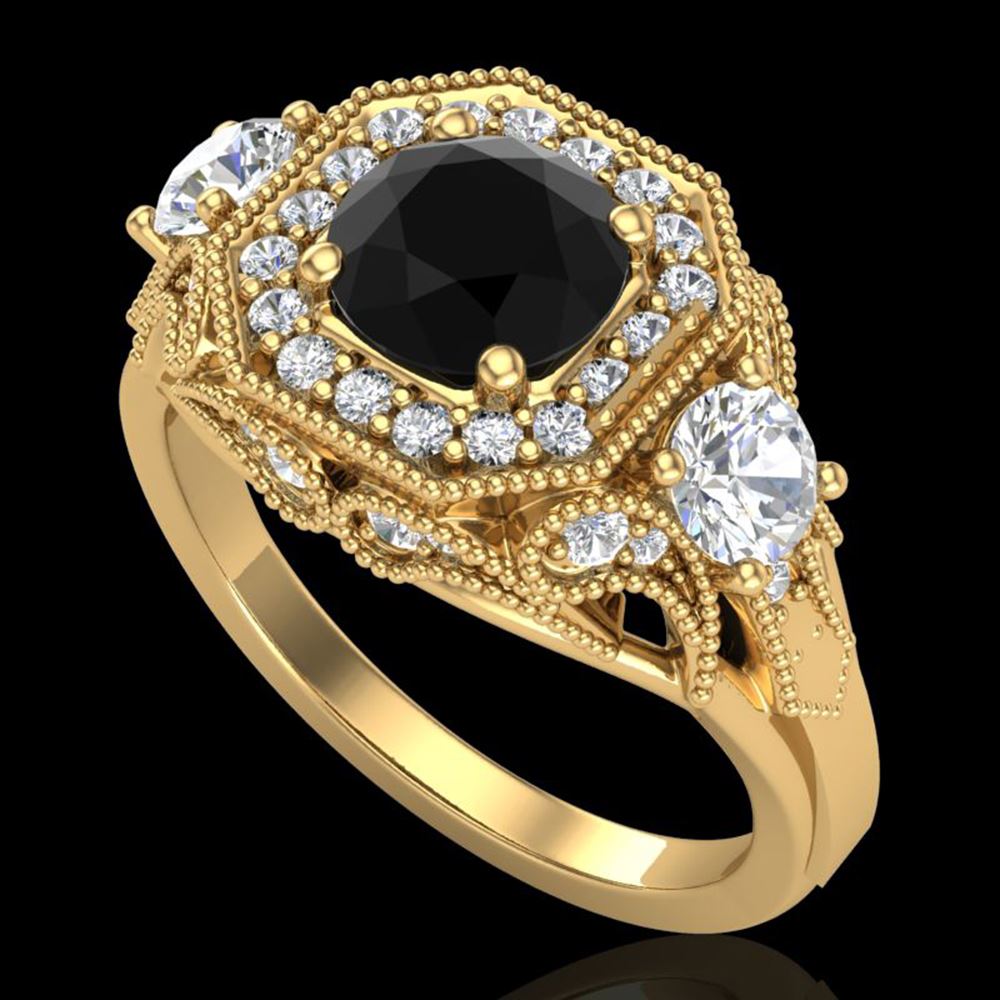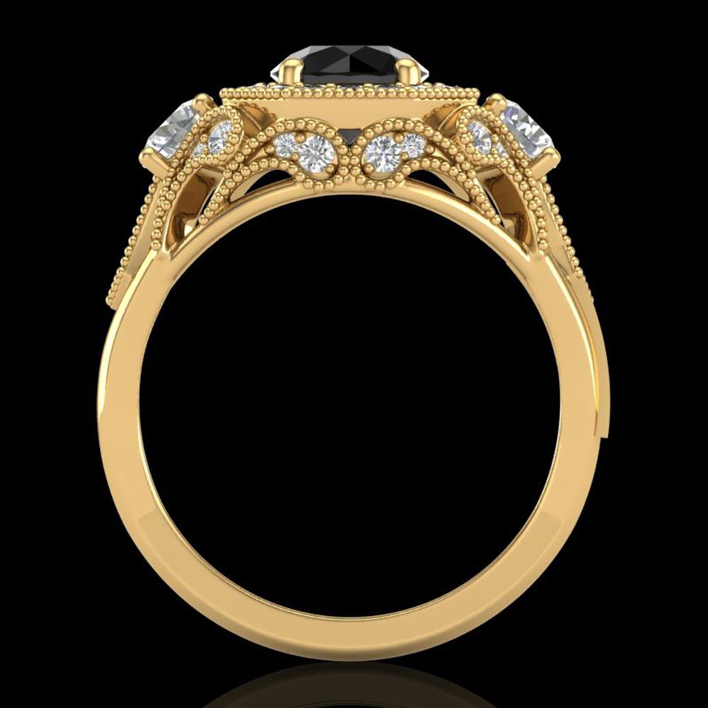REF-180M2G - SKU: 38299 ---- 2.11 ctw Fancy Black Diamond Art Deco 3 Stone Ring 18k Yellow Gold
