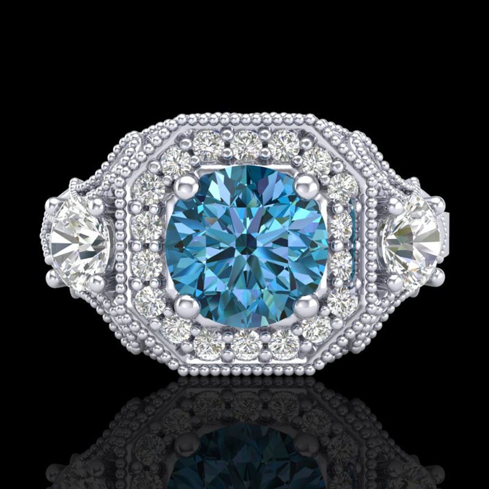 REF-283G6W - SKU: 38300 ---- 2.11 ctw Intense Blue Diamond Art Deco 3 Stone Ring 18k White Gold