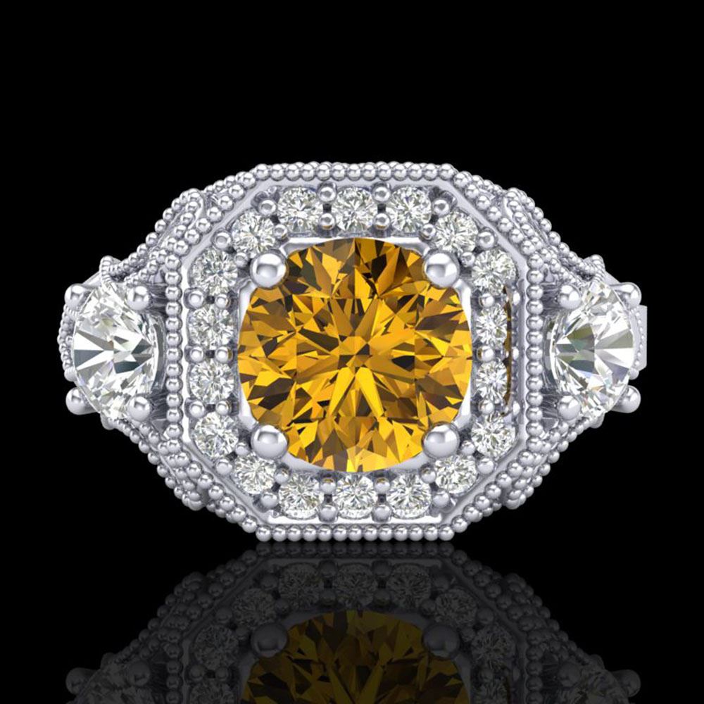 REF-283K6Y - SKU: 38302 ---- 2.11 ctw Intense Fancy Yellow Diamond Art Deco Ring 18k White Gold