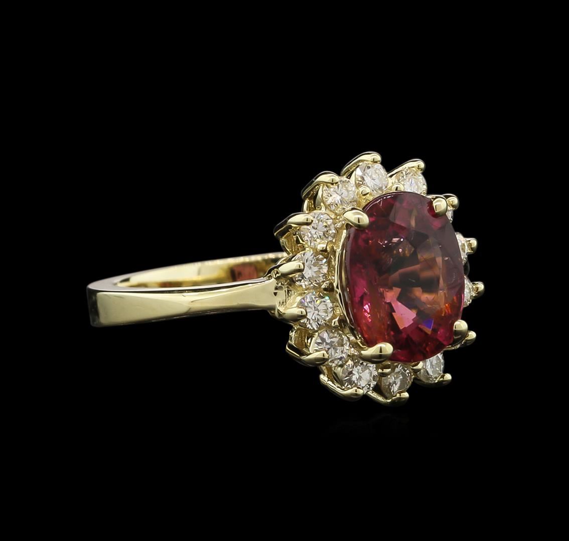 One ring featuring: 14KT yellow gold weighing 4.19 grams containing one pink tourmaline center stone with a total weight of 2.11ct and 14 diamonds with a total weight of 0.43ct.
