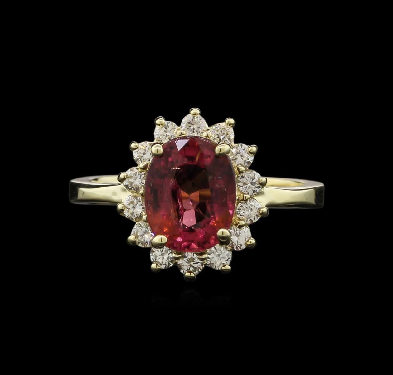 One ring featuring: 14KT yellow gold weighing 4.19 grams containing one pink tourmaline center stone with a total weight of 2.11ct and 14 diamonds with a total weight of 0.43ct.