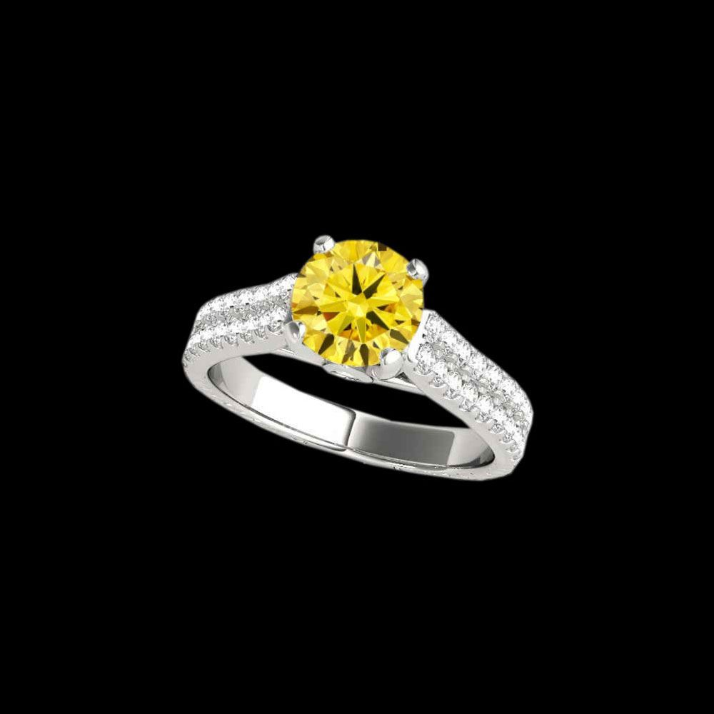2.11 ctw SI/I Fancy Intense Yellow Diamond Pave Ring 10K White Gold