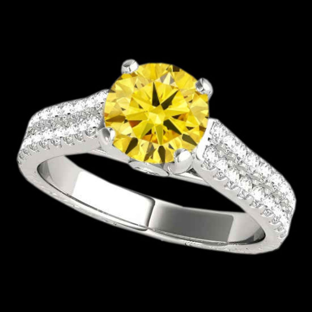SKU: 35470 ---- 2.11 ctw SI/I Fancy Intense Yellow Diamond Pave Ring 10k White Gold