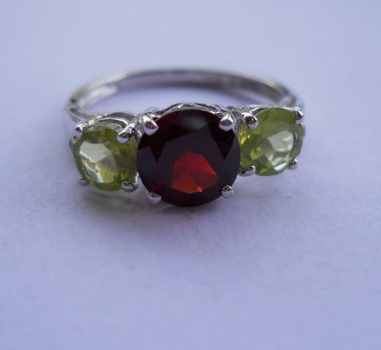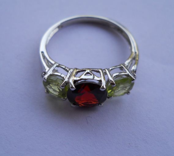 2.110g Ring of Peridot And Garnet Made in 925 Silver