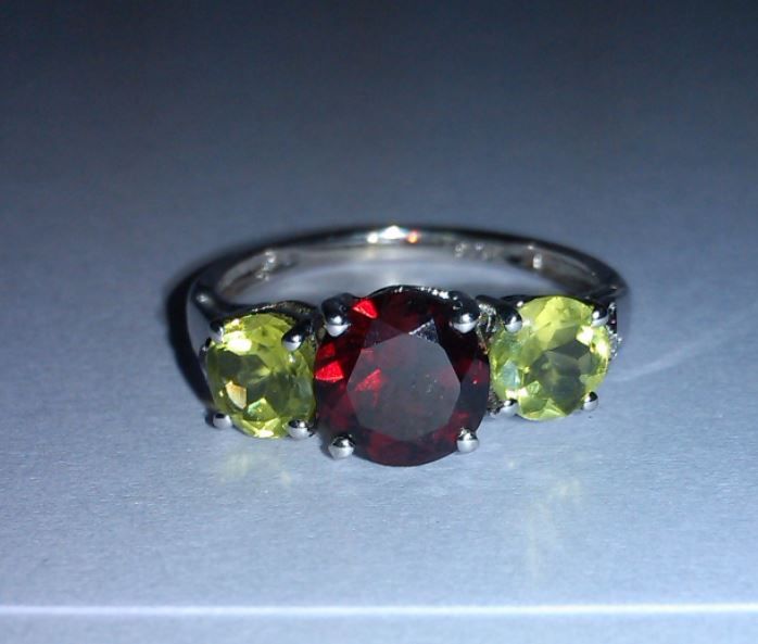 2.110g Ring of Peridot and Garnet Sterling 925 Silver