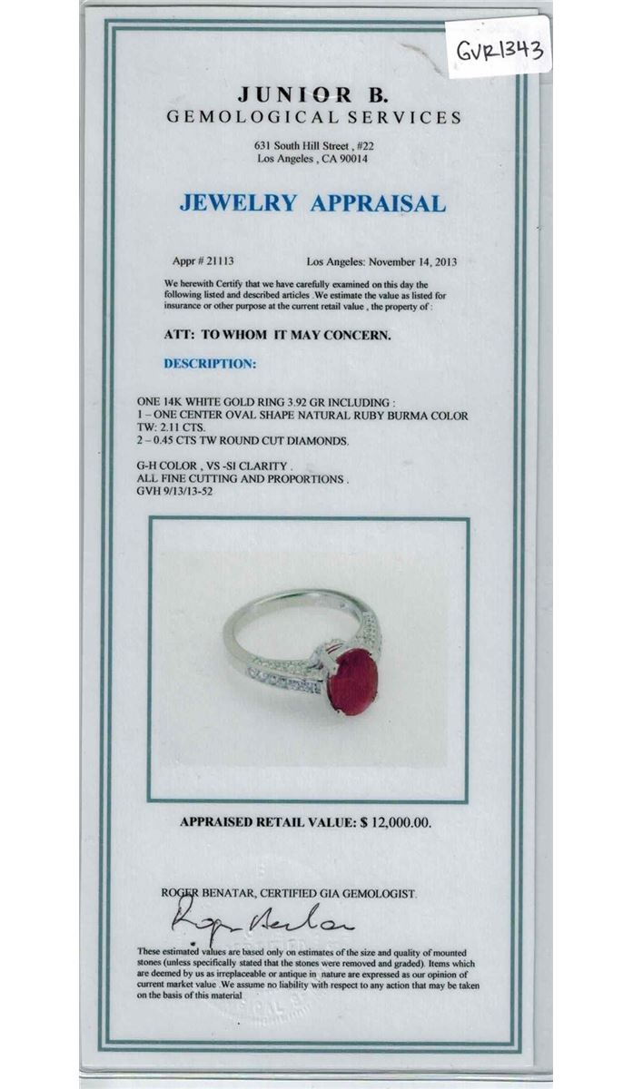 14K W/G NATURAL RUBY RING :3.952GRAM /NATURAL RUBY OVAO :2.11CT/NO LEAD /DIA :0.45CT/#GVR1343/ NO LEAD OR GLASS FILLING