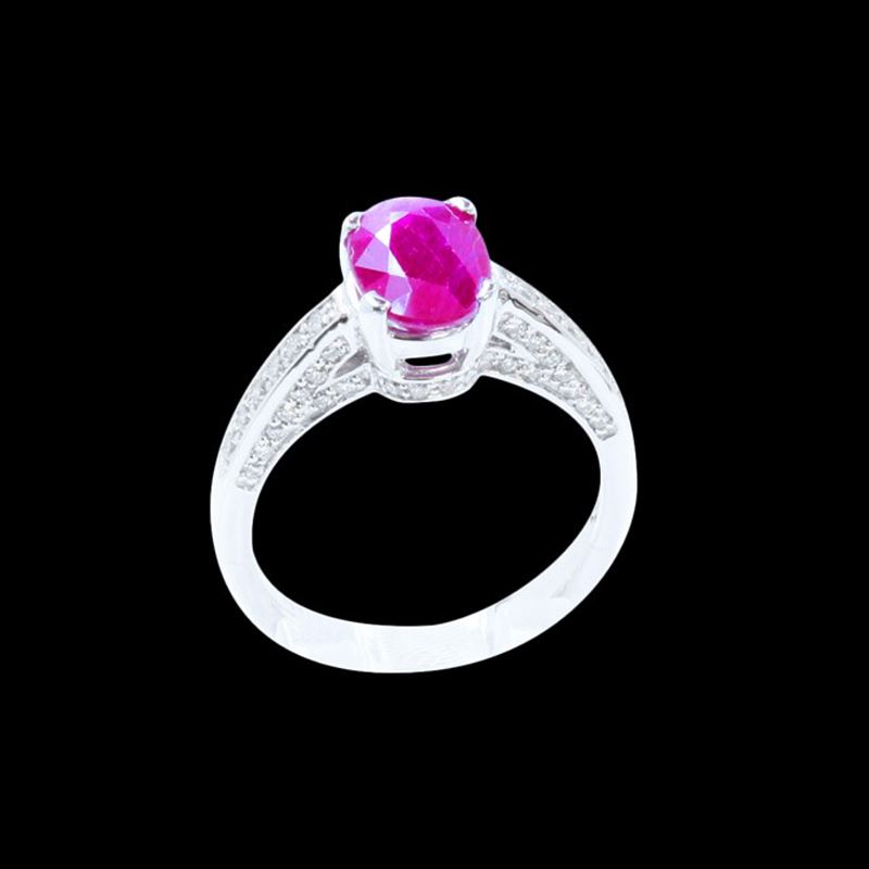 14K W/G NATURAL RUBY RING :3.952GRAM /NATURAL RUBY OVAO :2.11CT/NO LEAD /DIA :0.45CT/#GVR1343/ NO LEAD OR GLASS FILLING