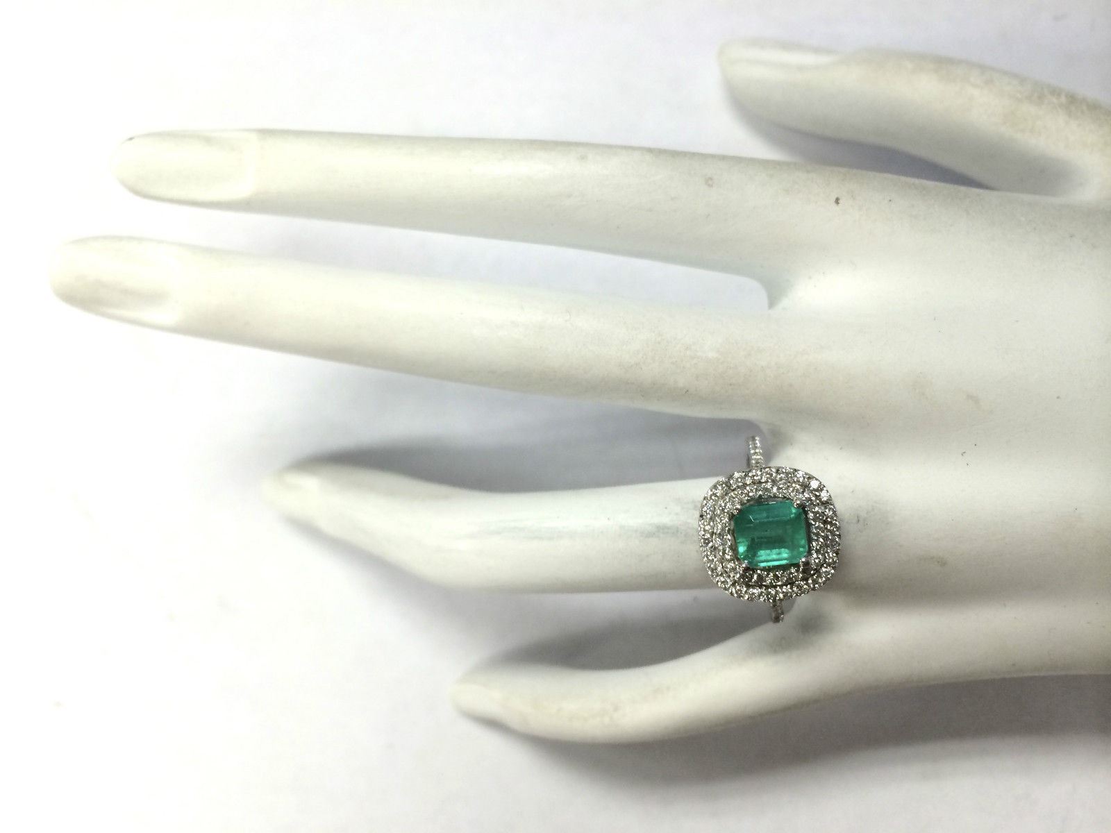 2.12 CTW Natural Colombian Emerald And Diamond Ring In 14K White Gold