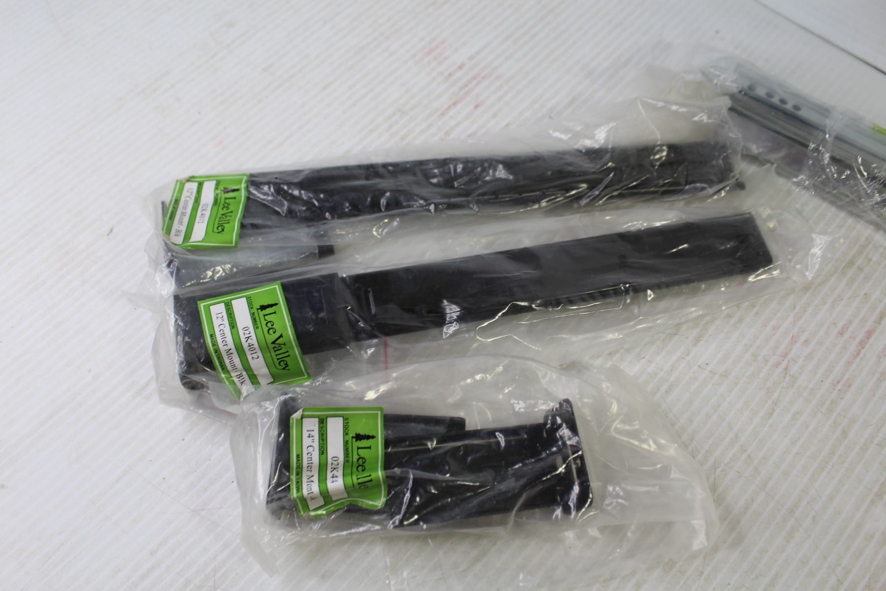 (2) Cabinet 12" Center Mount Sliders (1) 14" Center Mount Slide- Storage divider - (3) Pairs of Cabinet Slides