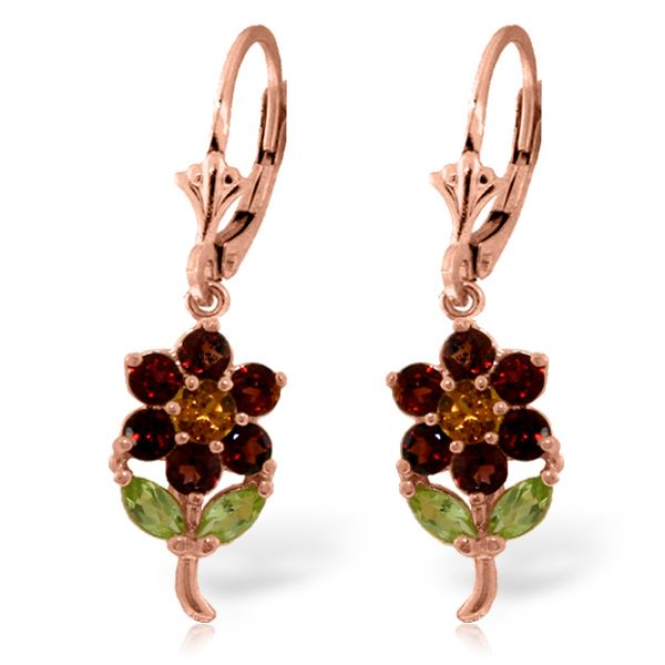 Genuine 14K Rose Gold 2.12 ctw Multi-gemstones Earrings