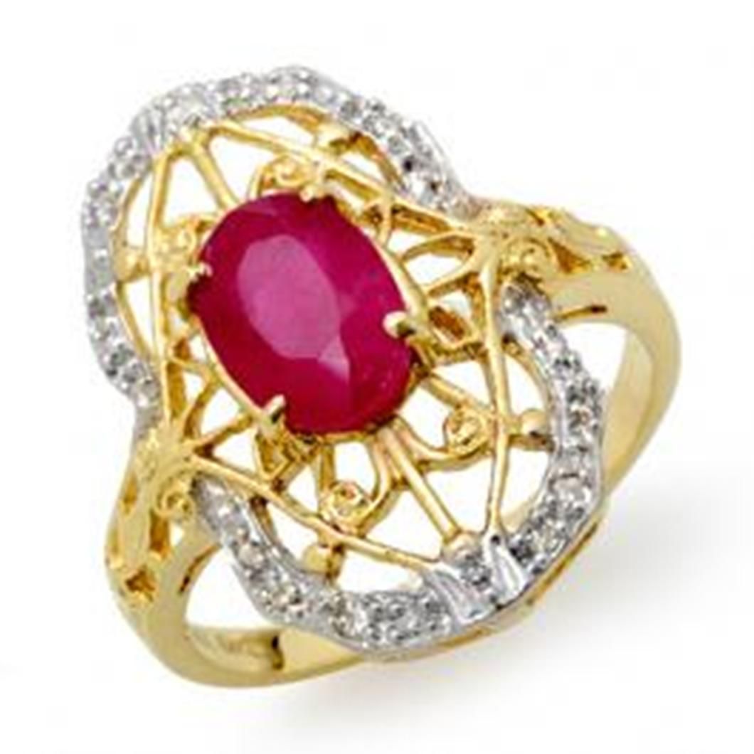 Diamond: 14 Round cut @ 0.12 ctw Clarity: SI-I Color: H-K Gemstone: Natural Ruby Gemstone color: RedGemstone quality: Good-to-Very Good Gemstone Cut & Weight: 1 Oval cut @ 2.0 ctw Metal Purity & Color : 14K Gold-Yellow Gold weight: 4.10 grams