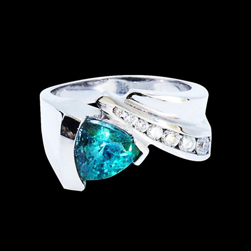 14K WHITE GOLD NATURAL ALEXANDRITE RING:7.88 GRAMS/DIAMOND:0.21CT/ALEXANDRITE:2.12CT/#GVR1015