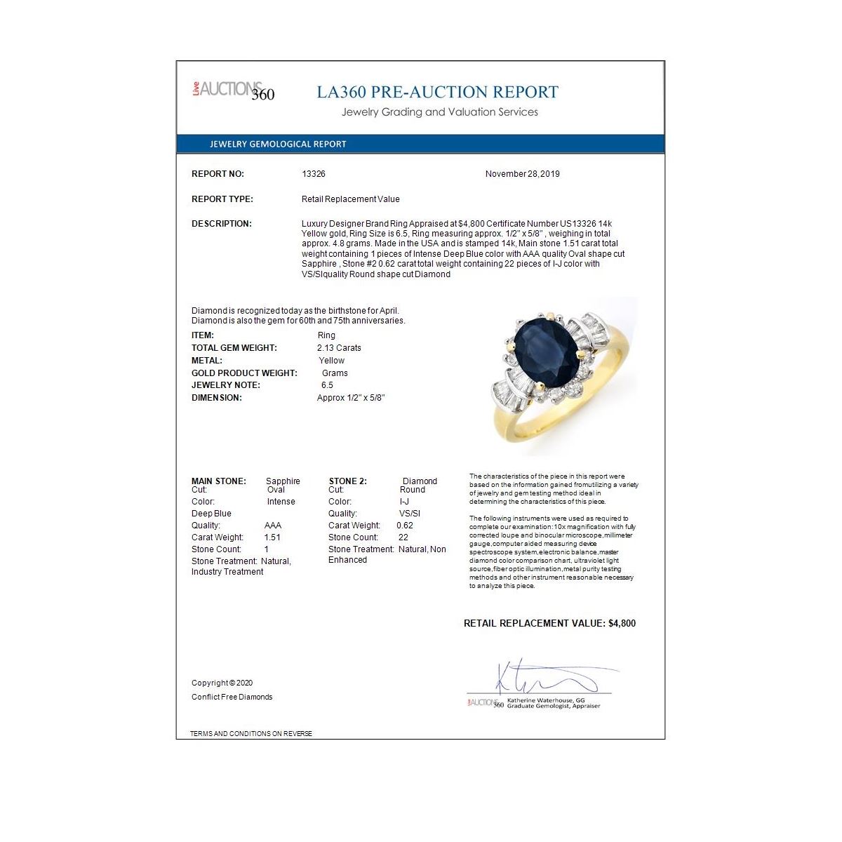 2.13 ctw Blue Sapphire & Diamond Ring 14K Yellow Gold