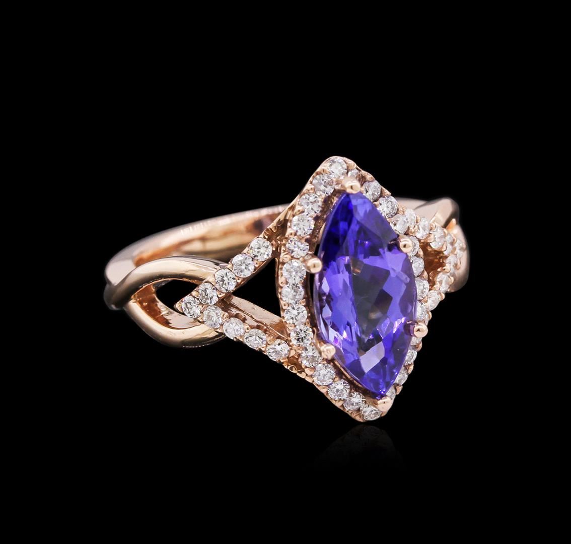 One ring featuring: 14KT rose gold weighing 5.34 grams containing one tanzanite with a total weight of 2.13ct and diamonds with a total weight of 0.41ct.