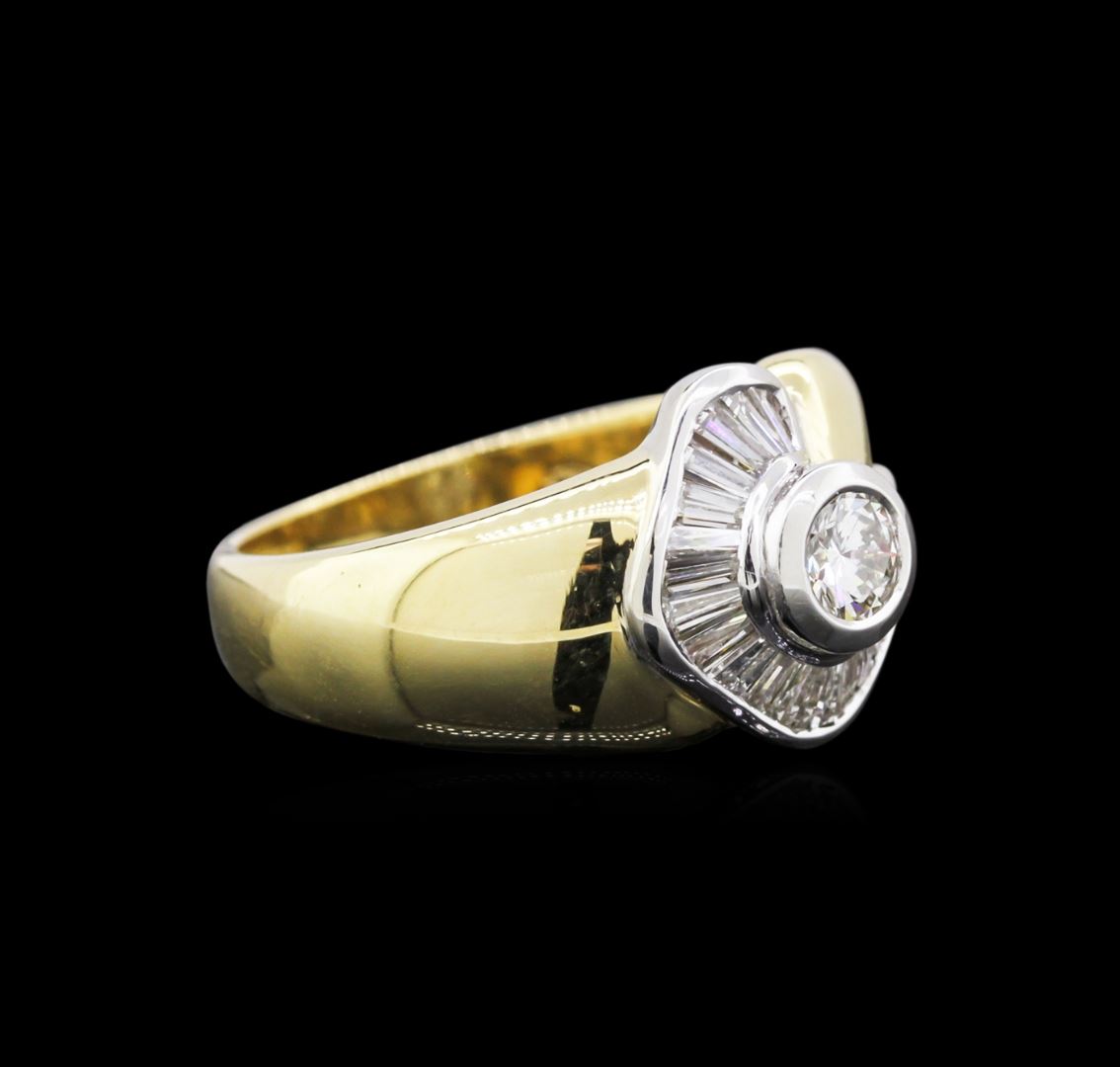 One ring featuring: 18KT yellow and white gold weighing 5.00 grams containing one diamond center stone with a total weight of 0.30ct and 22 tapered baguette cut diamonds with a total weight of 1.83ct.