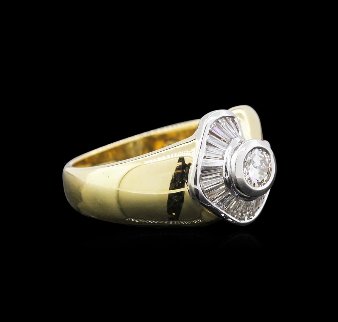 One ring featuring: 18KT yellow and white gold weighing 5.00 grams containing one diamond center stone with a total weight of 0.30ct and 22 tapered baguette cut diamonds with a total weight of 1.83ct.