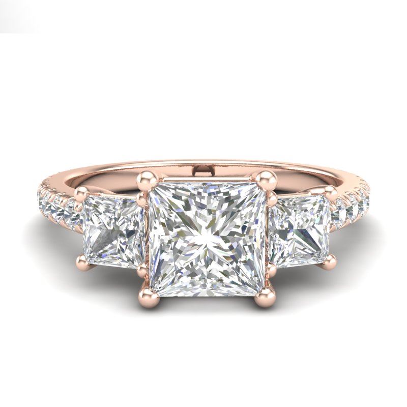 REF-454H5A -37206 ---- 2.14 CTW Princess VS/SI Diamond Art Deco 3 Stone Ring 18K Rose Gold ---- Luxury Designer Brand 3 stone ring Appraised at $22,500 Certificate Number US37206 18k Rose gold, 3 stone ring Size is 7, 3 stone ring measuring approx. Uniform, weighing in total approx. 6 grams. Made in the USA and is stamped 18k, Main stone 1 carat total weight containing 1 pieces of H-J color with VS/SI quality Princess shape cut Diamond , Stone #2 0.55 carat total weight containing 2 pieces of H-I color with VS/SI quality Princess shape cut Diamond , Stone #3 0.59 carat total weight containing 22 pieces of G-H color with VS/SI quality Round shape cut Diamond