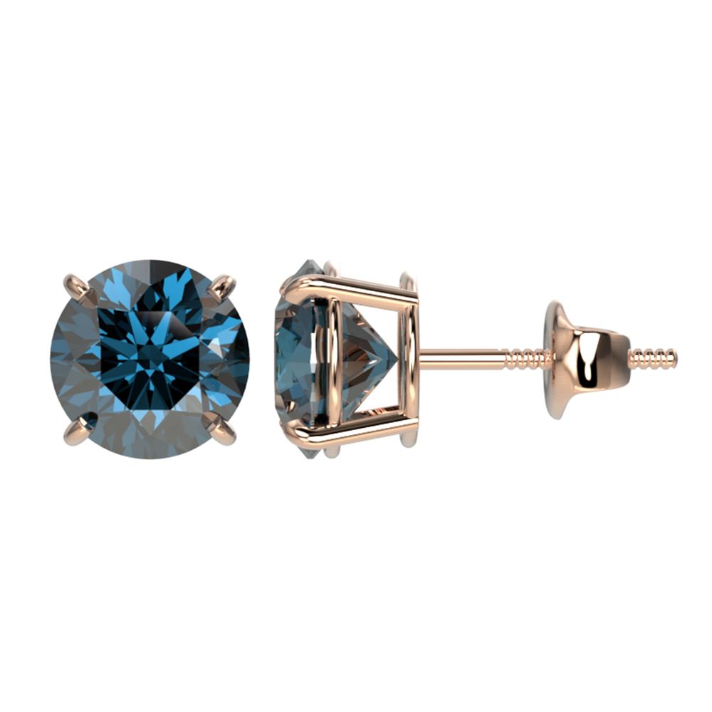 SKU: 36661 ---- 2.14 ctw Certified Intense Blue Diamond Stud Earrings 10k Rose Gold