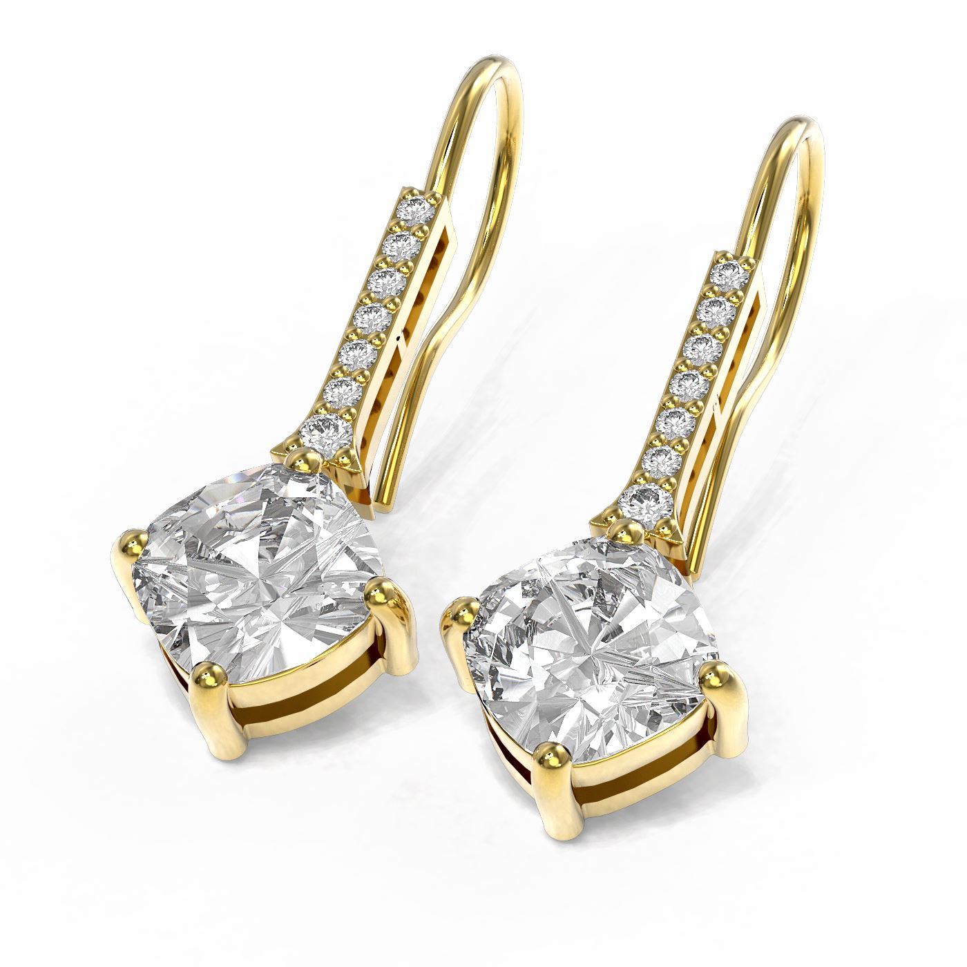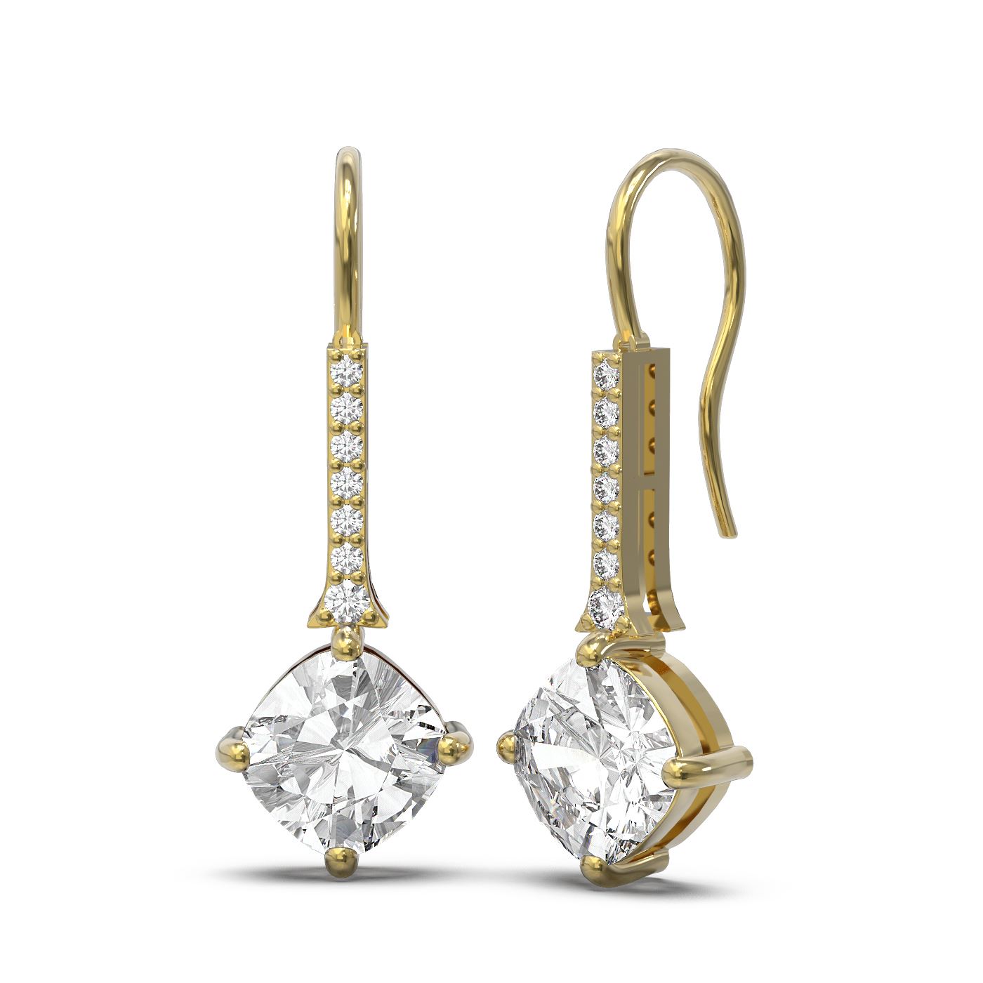 REF-568N9F - SKU: 57100 ---- 2.14 ctw Cushion Diamond Earrings 18K Yellow Gold