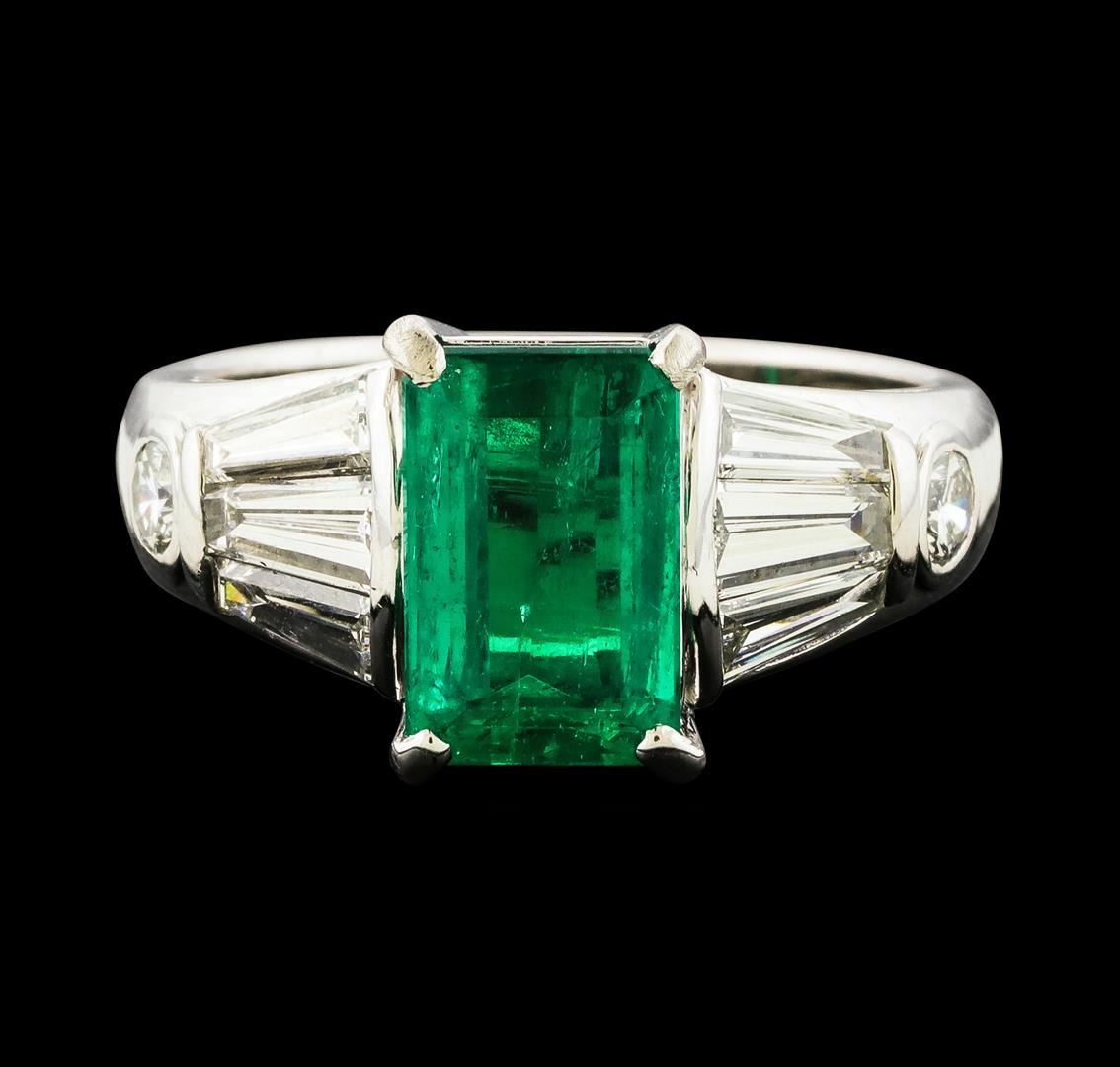One ring featuring: Platinum containing Emerald with a total weight of 2.14ct and Diamonds with a total weight of 1.13ct. Total Weight of Ring: 9.6 grams.