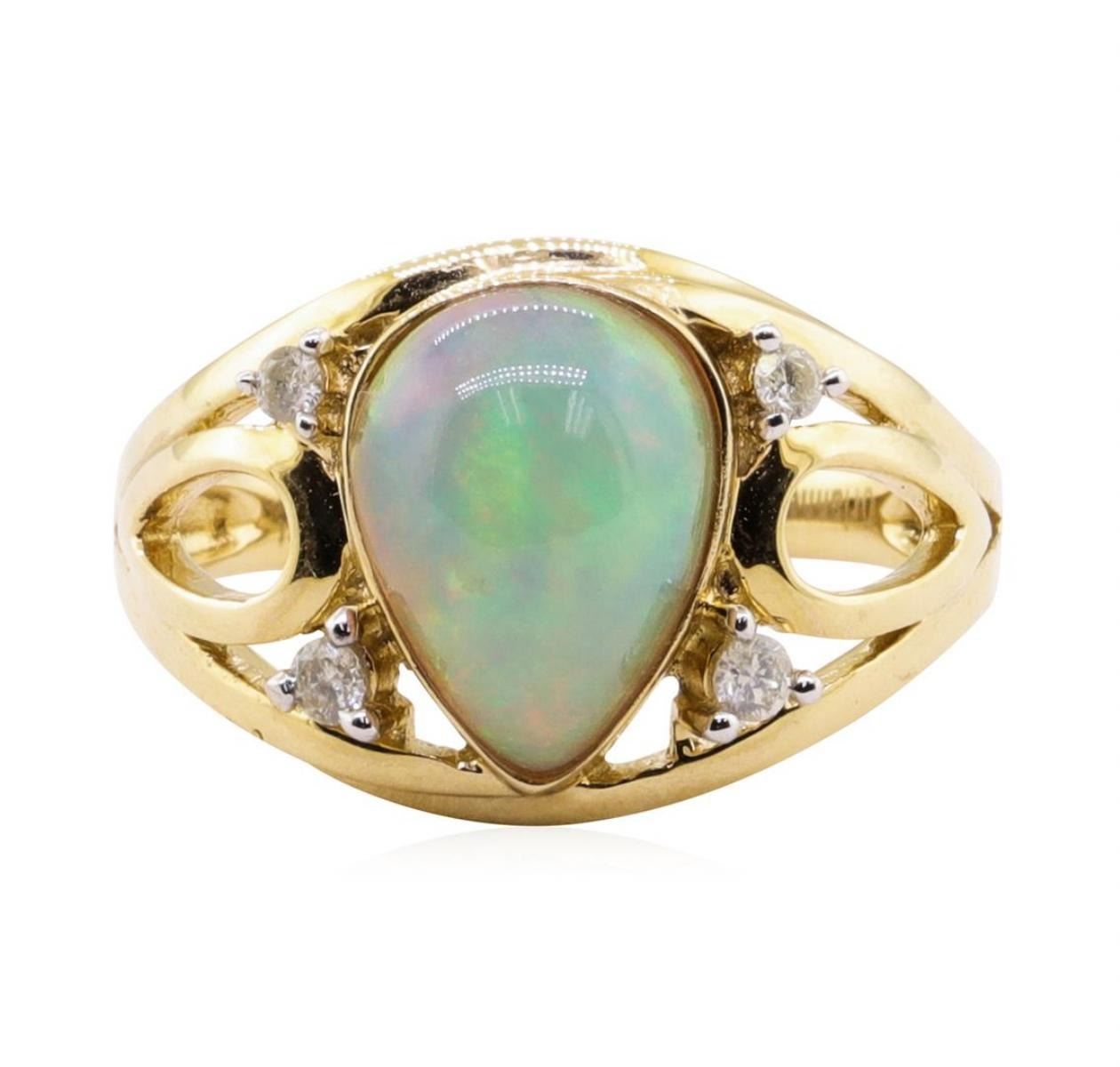 One 2.14ct Opal and Diamond Ring - 14KT Yellow Gold. GLA certified. See Appraisal for more details. GLA Appraised.