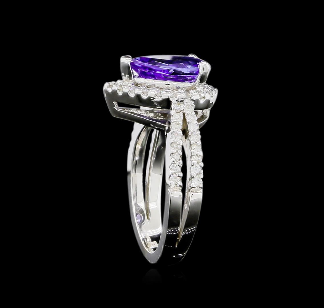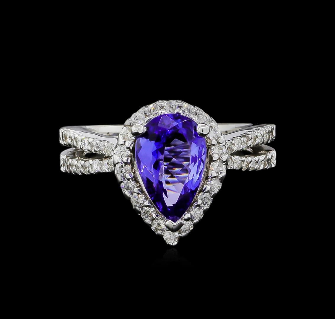 One ring featuring: 14KT white gold weighing 6.86 grams containing one tanzanite with a total weight of 2.14ct and side diamonds with a total weight of 0.45ct.