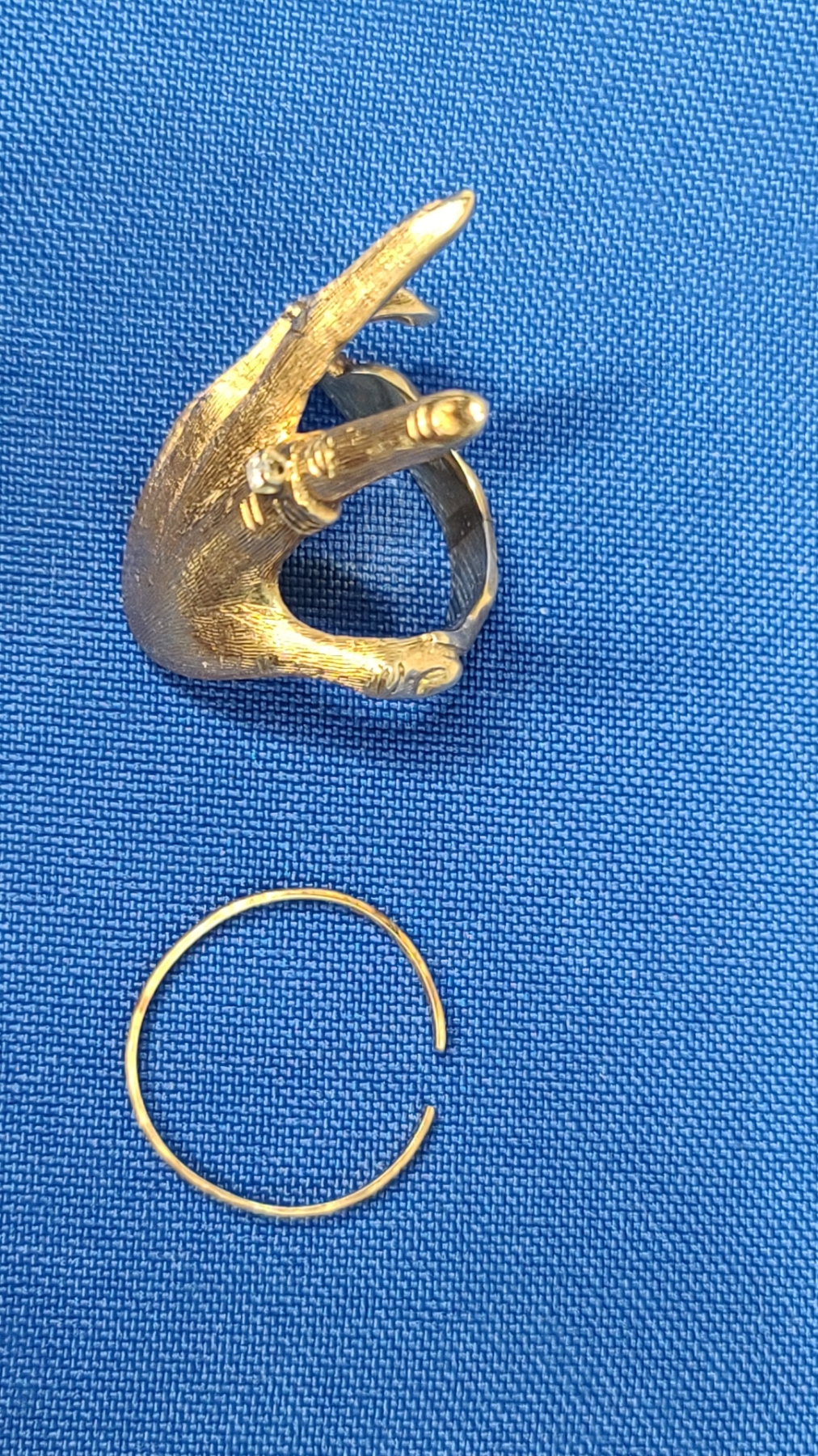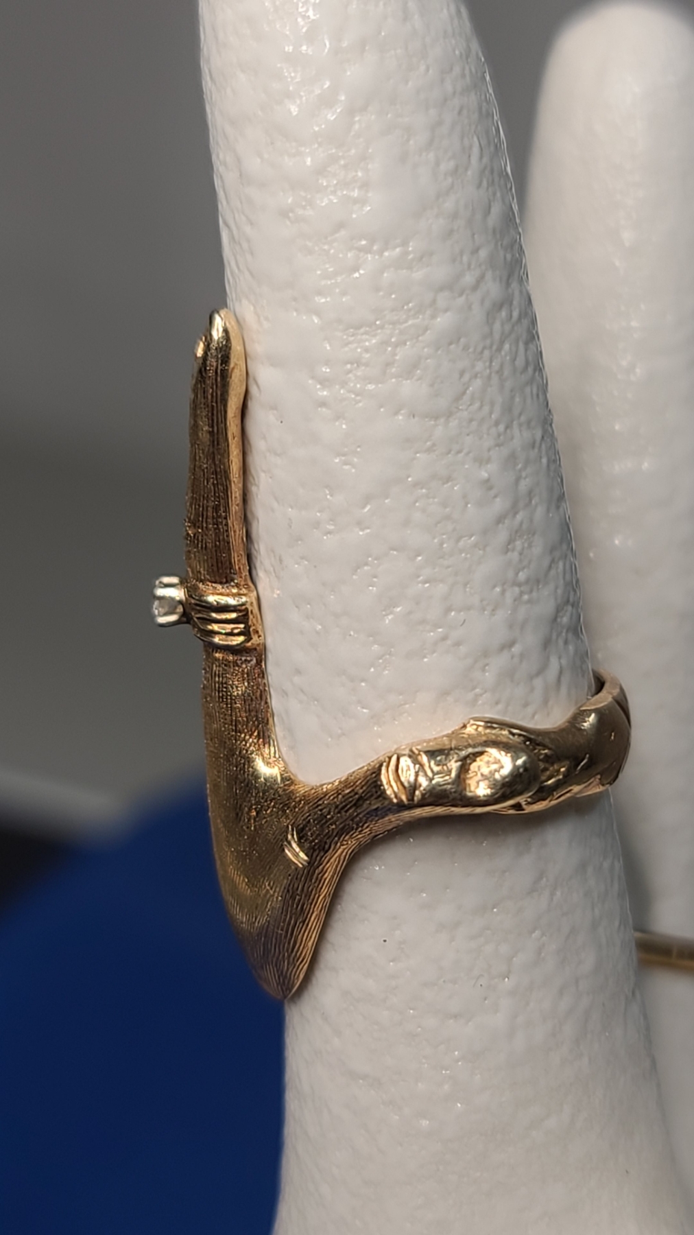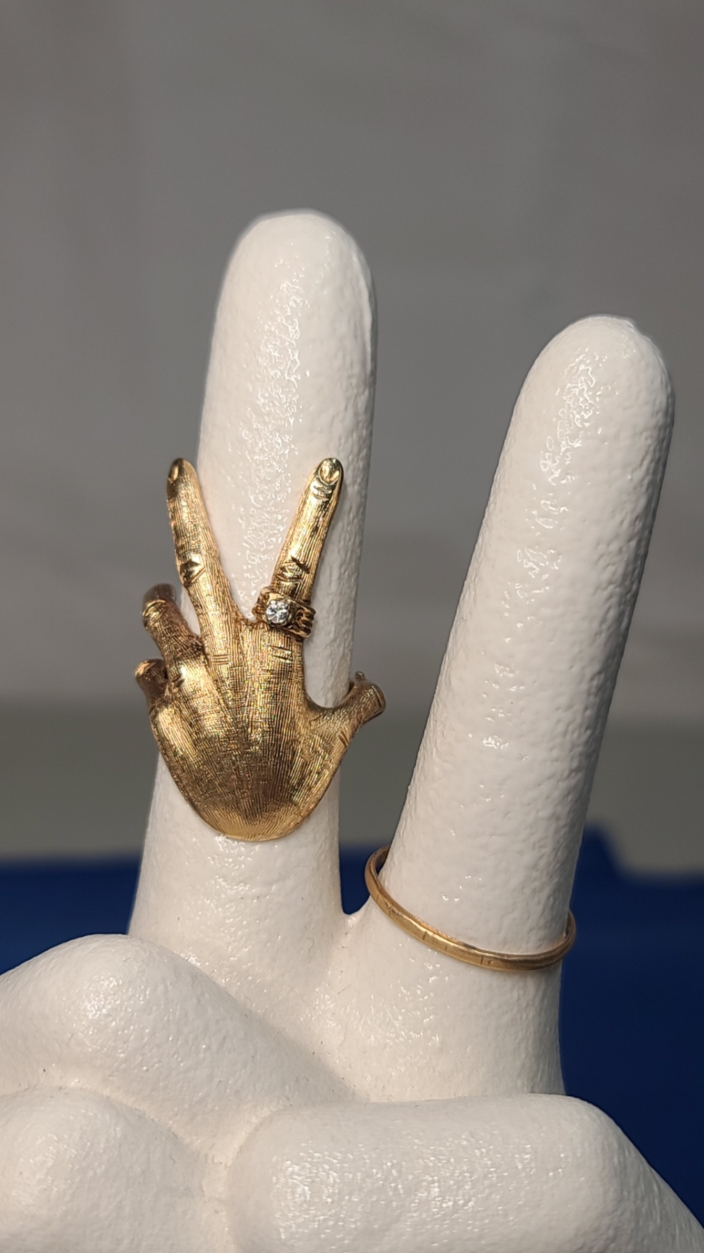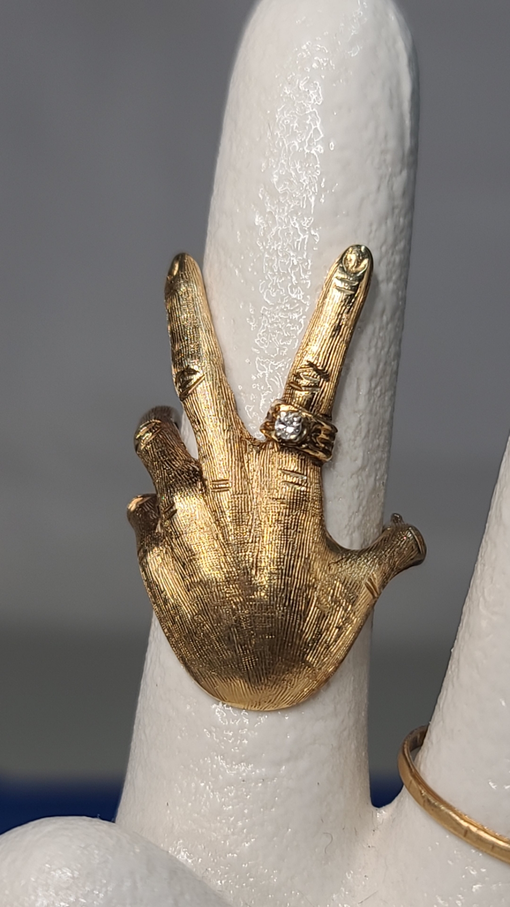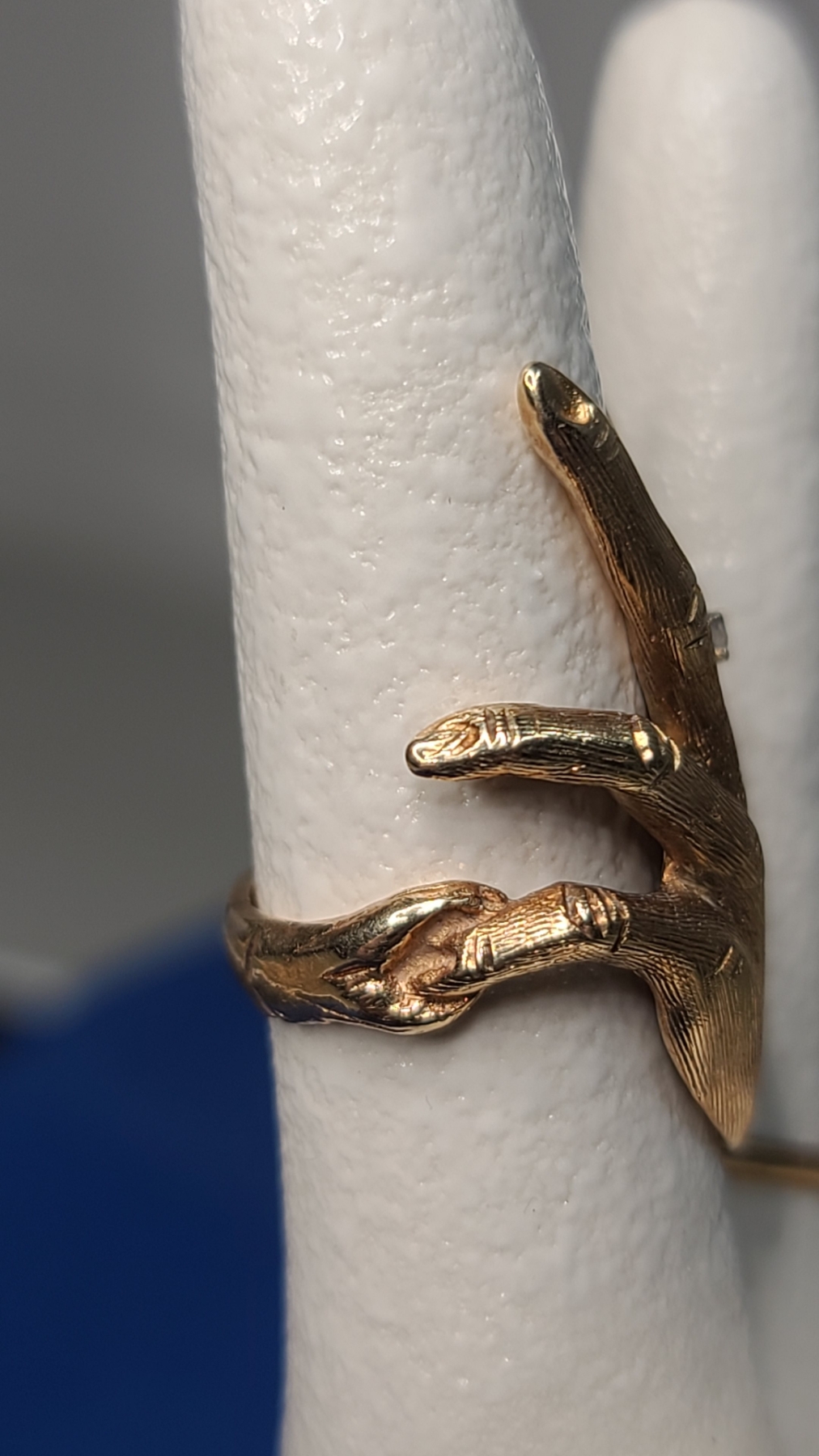 (2) 14K Gold Rings - Heavy Vintage Figural Hand Ring & Simple Band - Total Weight: 11.1g