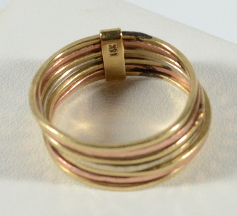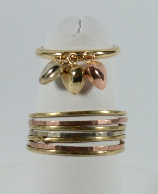 2 - 14K TRI-COLORED RINGS, 1- SIZE 7 MULTI BAND & 1- SIZE 3 PINKY RING w/HEARTS