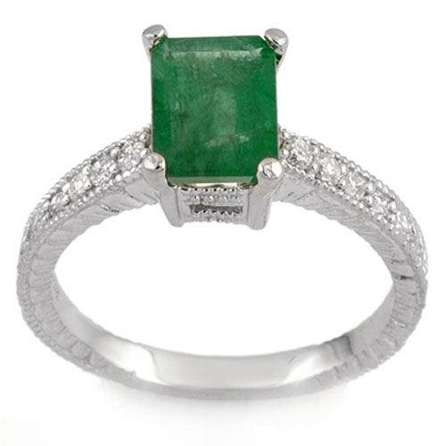 2.15 CTW Emerald & Diamond Ring 14K White Gold ---- Luxury Designer Brand Ring Appraised Retail Price at $3,600 ---- SKU Number US11586 14k White gold Ring Size is 6.75, Ring measuring approx. 5/16" x 3/4" , weighing in total approx. 4.4 grams. Made in the USA and is stamped 14k, Main stone 2 carat total weight containing 1 pieces of Intense Green color with AAA quality Emerald shape cut Emerald , Stone #2 0.15 carat total weight containing 8 pieces of H-I color with VS/SI quality Round shape cut