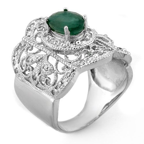 REF-80M2H -10577 ---- 2.15 CTW Emerald & Diamond Ring 14K White Gold ---- Luxury Designer Brand Ring Appraised at $5,300 Certificate Number US10577 14k White gold, Ring Size is 7, Ring measuring approx. 13/16" x 3/4" , weighing in total approx. 7.8975 grams. Made in the USA and is stamped 14k, Main stone 1.5 carat total weight containing 1 pieces of Intense Green color with AAA quality Oval shape cut Emerald , Stone #2 0.65 carat total weight containing 44 pieces of H-I color with VS/SI quality Round shape cut Diamond