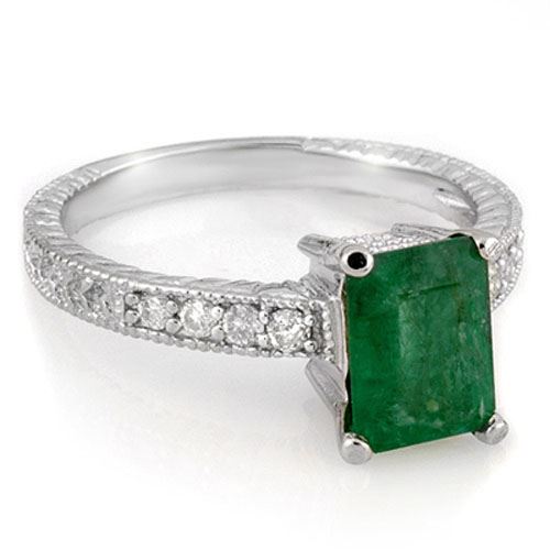 REF-64W2F -11587 ---- 2.15 CTW Emerald & Diamond Ring 18K White Gold ---- Luxury Designer Brand Ring Appraised at $4,200 Certificate Number US11587 18k White gold, Ring Size is 6.75, Ring measuring approx. 5/16" x 3/4" , weighing in total approx. 5.4 grams. Made in the USA and is stamped 18k, Main stone 2 carat total weight containing 1 pieces of Intense Green color with AAA quality Emerald shape cut Emerald , Stone #2 0.15 carat total weight containing 8 pieces of H-I color with VS/SI quality Round shape cut Diamond