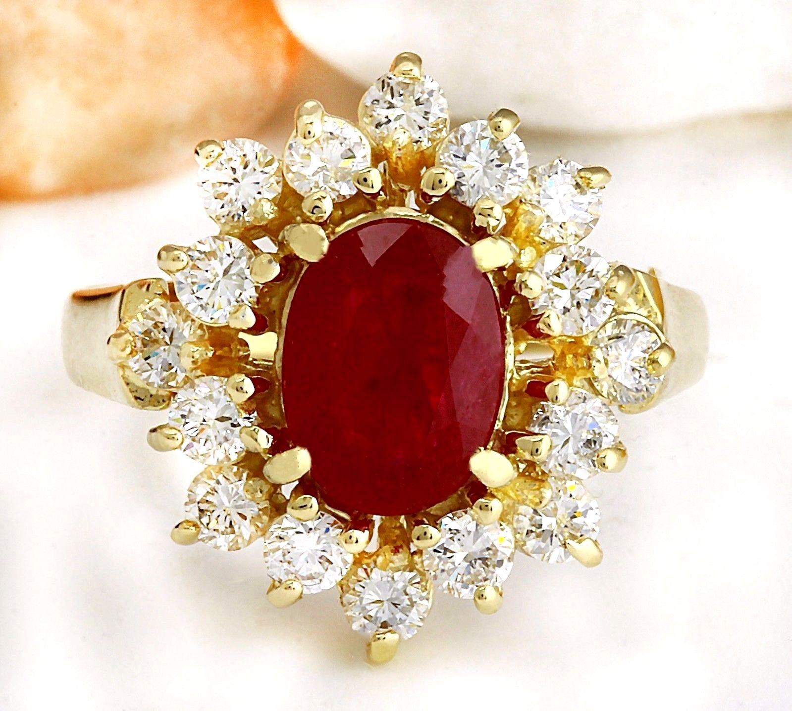 2.15 Carat Natural Ruby 14K Solid Yellow Gold Diamond Ring