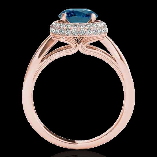 REF-263H6A -34420 ---- 2.15 CTW Si Certified Fancy Blue Diamond Solitaire Halo Ring 10K Rose Gold ---- Luxury Designer Brand Ring Appraised at $17,400 Certificate Number US34420 10k Rose gold, Ring Size is 7, Ring measuring approx. Uniform, weighing in total approx. 5.5 grams. Made in the USA and is stamped 10k, Main stone 1.5 carat total weight containing 1 pieces of Intense Fancy Blue color with SI quality Round shape cut Diamond , Stone #2 0.65 carat total weight containing 73 pieces of H-I color with VS/SI quality Round shape cut Diamond
