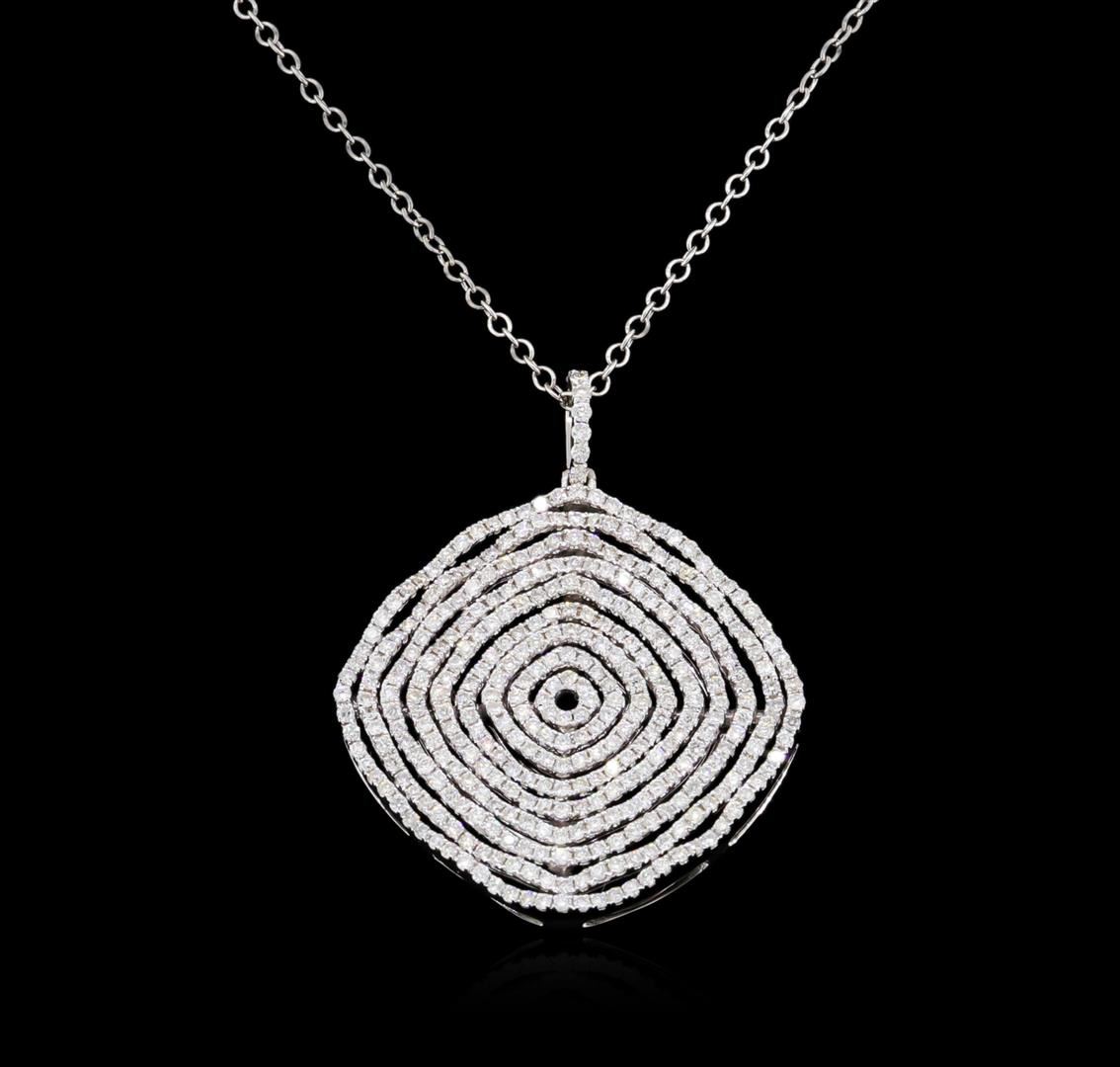 One 18KT white gold pendant and chain weighing 15.1 grams containing round brilliant cut diamonds with SI1-SI2 clarity and G-H color weighing 2.15ctw. GGA Appraised at $7,460.00.